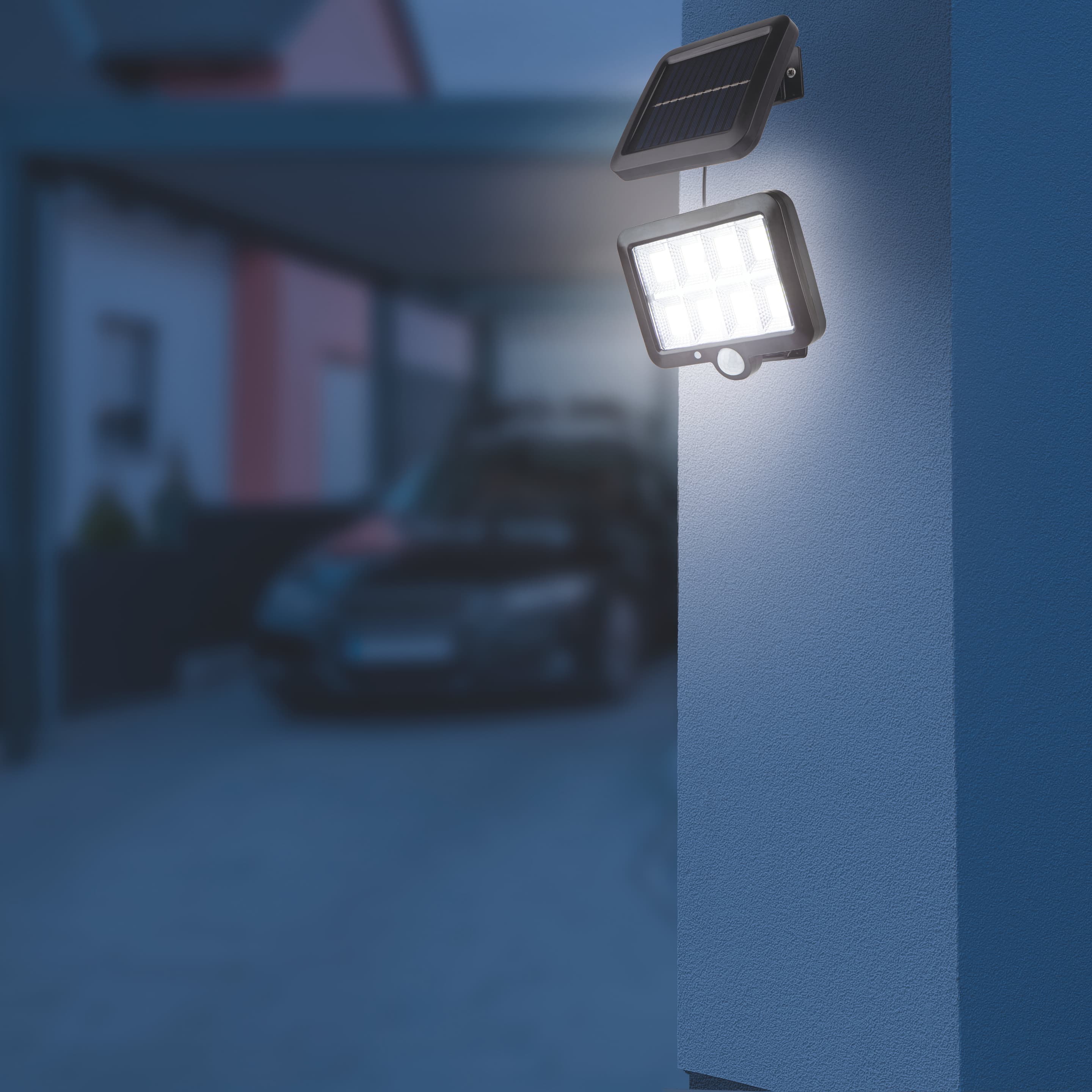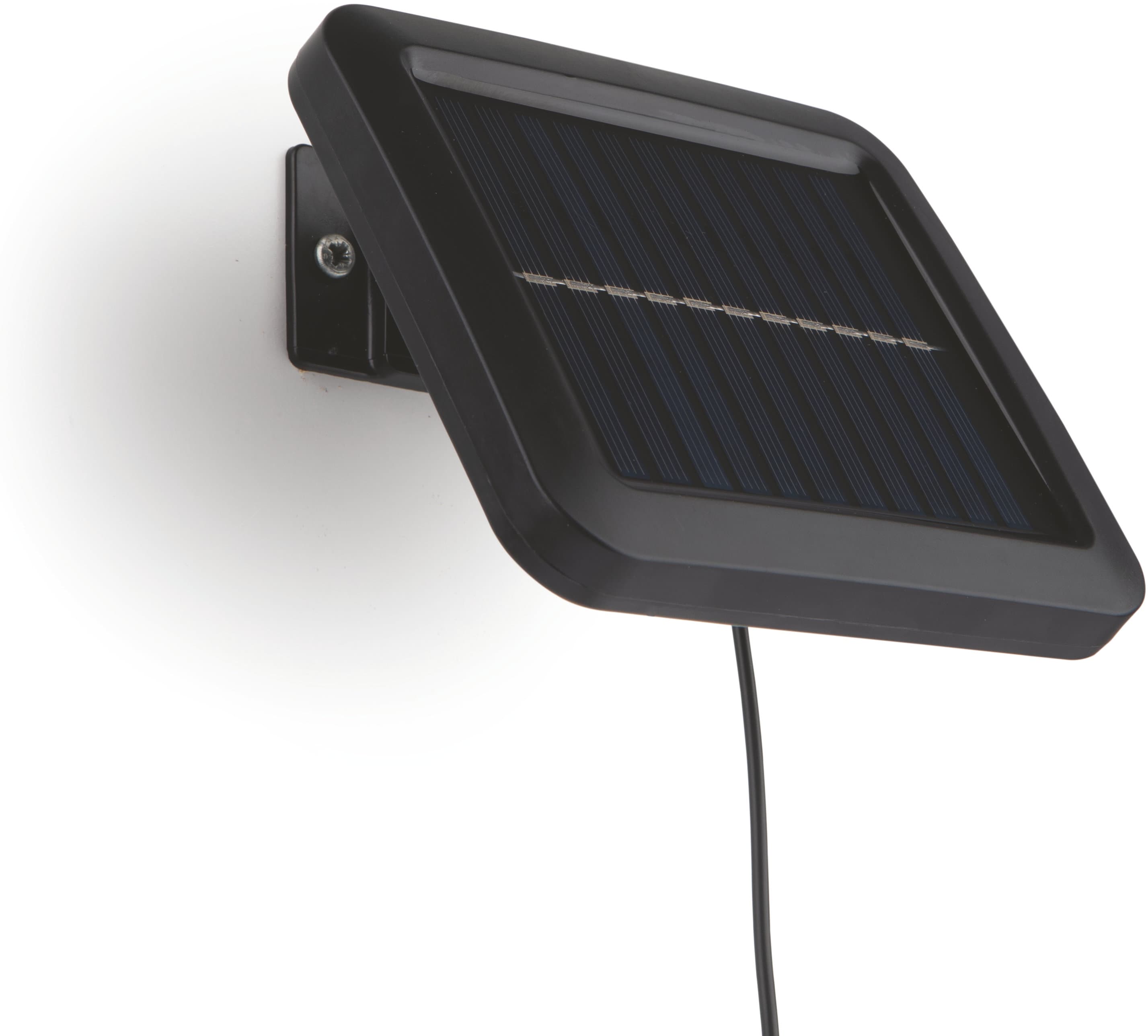 Einfach mehr Licht für dunkle Ecken! Mit dem EASYmaxx Solarstrahler erhellen Sie ganz ohne Stromkosten Ihren Hauseingang, Garten, Carport und alle Bereiche, die Sie nicht im Dunkeln lassen möchten. Er kann mit dem beiliegenden Befestigungsmaterial einfach an der Wand montiert werden. Der extra helle Solarstrahler mit 8 COB-LEDs (insgesamt 300 Lumen) ist mit dem Solarpanel durch ein Kabel verbunden. Beide Teile lassen sich flexibel positionieren: So kann z.B. der LED-Solarstrahler unter dem Hausdach platziert werden und das Solarpanel an der Stelle, wo es am meisten Licht "sammeln" kann. Der integrierte Bewegungsmelder erkennt Bewegungen aus einer Entfernung von ca. 3 bis 5 Metern. Per Fernbedienung können 3 verschiedene Modi eingestellt werden: 100 % Licht bei Bewegung und automatische Abschaltung nach 20 Sekunden oder bei Nacht gedimmtes Dauerlicht und bei Bewegung 100 % Licht für ca. 20 Sekunden oder gedimmtes Dauerlicht mit 50 % Helligkeit bei Dämmerung. Der EASYmaxx Solarstrahler lädt sich über das Solarpanel am Tag mit Sonnenlicht auf und das Licht wird am Abend per Dämmerungssensor aktiviert. So sorgen Sie unabhängig vom Stromnetz für eine zuverlässige Beleuchtung Ihres Zuhauses.
