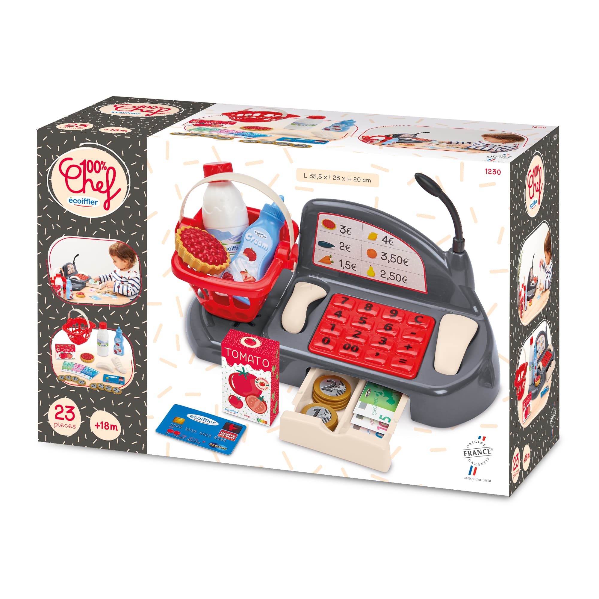 Mit der Supermarktkasse von Ecoiffier können Kinder in die Rolle von Verkäufern schlüpfen und ihre eigenen Einkaufsszenarien nachspielen. Das Spielzeug ist für Kinder ab 18 Monaten geeignet und fördert spielerisch den Umgang mit Zahlen und das soziale Miteinander.