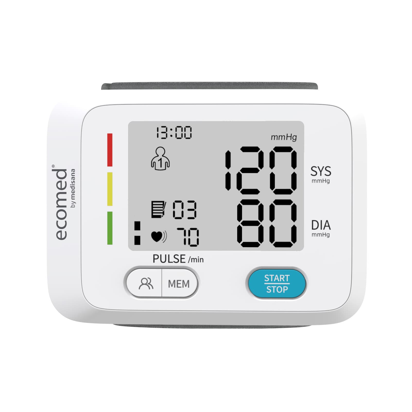 Das Handgelenk-Blutdruckmessgerät BW-83E ermöglicht eine präzise Blutdruckmessung am Handgelenk. Dabei wird das Ergebnis anhand einer Ampel-Farbskala klassifiziert und eingestuft. Die Messwerte können für 2 Benutzer mit jeweils 90 Speicherplätzen gesichert werden. Bei dem Display handelt es sich um ein besonders großes, leicht ablesbares LCD-Display, das Systole, Diastole, Puls, Datum, Uhrzeit und Batteriestand anzeigt. Die Manschette ist geeignet für einen Handgelenkumfang zwischen 13,5 und 19,5 cm.