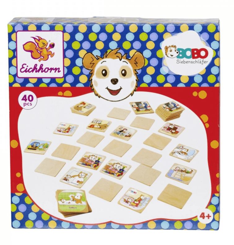 Das Bobo Siebenschläfer Memo-Spiel von Eichhorn bringt Spaß und fördert gleichzeitig die Konzentration und das Gedächtnis! Mit liebevoll gestalteten Karten rund um die beliebte Figur Bobo Siebenschläfer können Kinder ab 2 Jahren spielerisch Paare finden und ihre Merkfähigkeit trainieren.