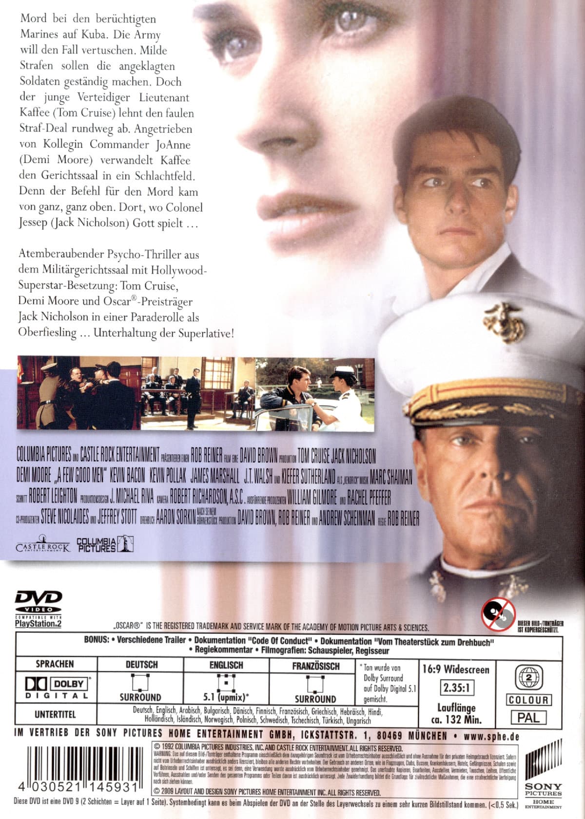 | Schauspieler | Tom Cruise, Jack Nicholson, Demi Moore, Kevin Bacon, Kevin Pollak, Kiefer Sutherland, J.T. Walsh, Matt Craven, Christopher Guest, Xander Berkeley, James Marshall, John M. Jackson, J.A. Preston, Wolfgang Bodison |