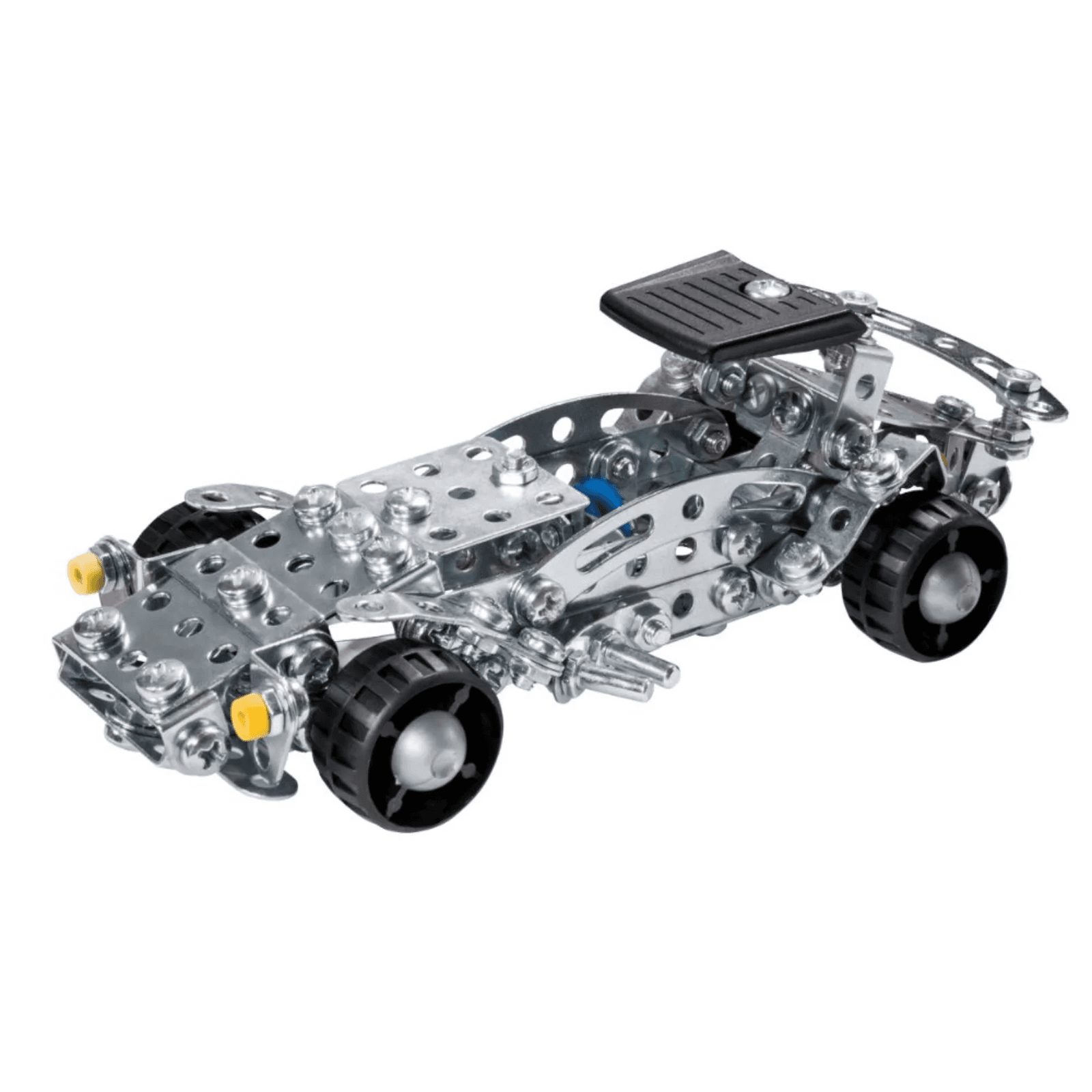 Mit dem eitech Speed Racer Modell 1 erleben Kinder und Technikfans echten Konstruktionsspaß. Aus 260 robusten Metallbauteilen entsteht ein detailreicher Retro‑Rennwagen mit rollfähigen Profilreifen und realistischem Cockpit inklusive Lenkrad. Das klassische Oldtimer‑Design sorgt für authentisches Rennfeeling und lädt zu kreativen Bauprojekten ein.