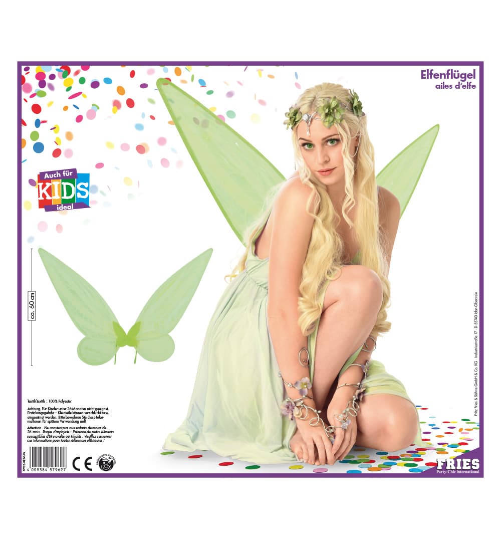Diese wunderschönen grünen Elfenflügel sind nicht nur an Karneval, sondern auch beim Cosplay eine gute Wahl. Schmal geformt und mit filigranem Muster, so wirken sie besonders realistisch. Mit der einfachen Befestigung durch Schulterschlaufen passen sie sowohl Kindern als auch Erwachsenen und verwandeln sie in wahrhaft magische Wesen.