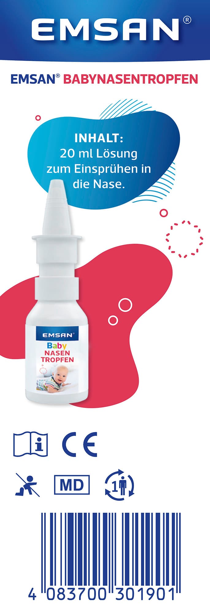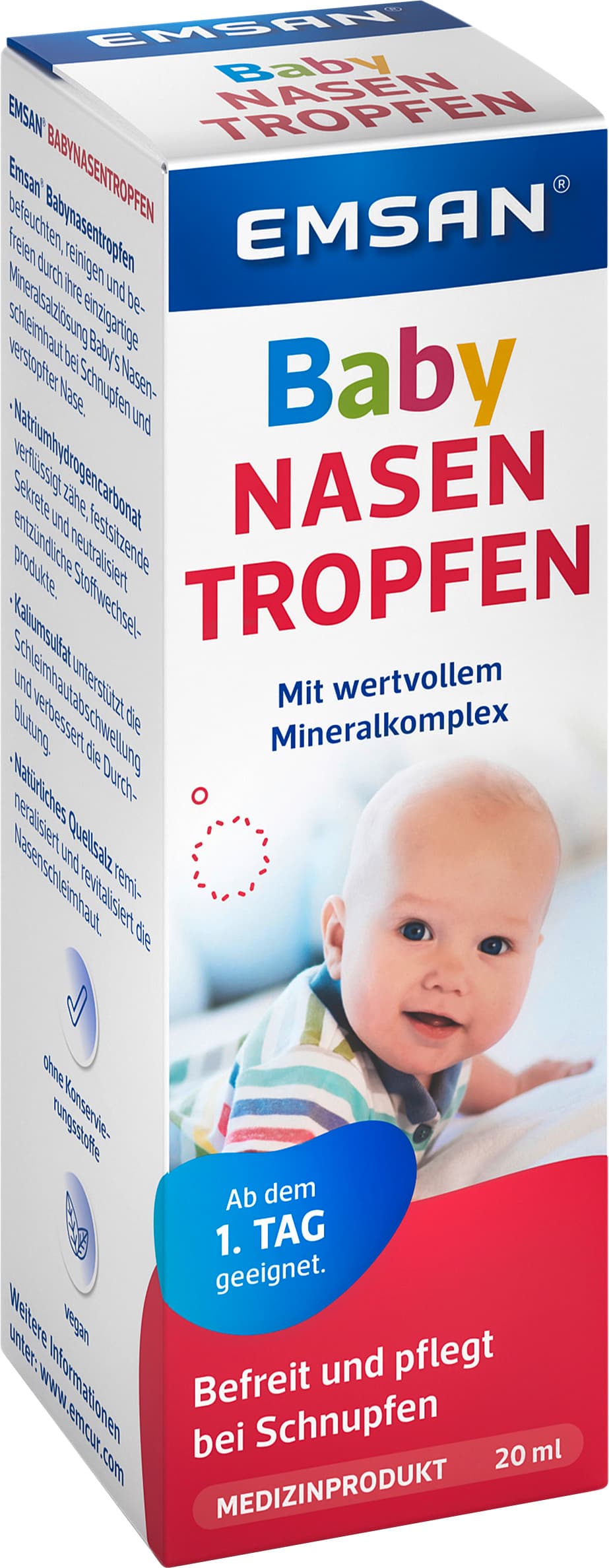 • Emsan® Babynasentropfen befeuchten, reinigen und befreien durch ihre einzigartige Mineralsalzlösung die Baby- Nasenschleimhaut bei Schnupfen und verstopfter Nase.
