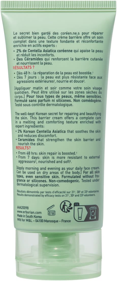 Unser K-Beauty Geheimnis: Eine Gesichtscreme, die die Hautbarriere in nur 30 Minuten stärkt (1). Mit ihrer reichhaltigen, schmelzenden und wohltuenden Textur, angereichert mit 2% Centella Asiatica und Ceramiden, bietet diese Creme eine umfassende Pflege, die die Haut repariert und nährt. Nach 48 Stunden ist die Hautregeneration verbessert (2). Nach 7 Tagen ist die Haut widerstandsfähiger gegenüber äußeren Einflüssen (3). 94% der Anwender*innen finden, dass ihre Haut gestärkt ist (4). Extra: Diese Creme kann auch auf trockenen Körperstellen verwendet werden, um die Haut mit Feuchtigkeit zu versorgen und Rauheit zu reduzieren! Ohne Duftstoffe. Für alle Hauttypen, selbst empfindliche Haut. Vegan. 88% Inhaltsstoffe natürlichen Ursprungs.