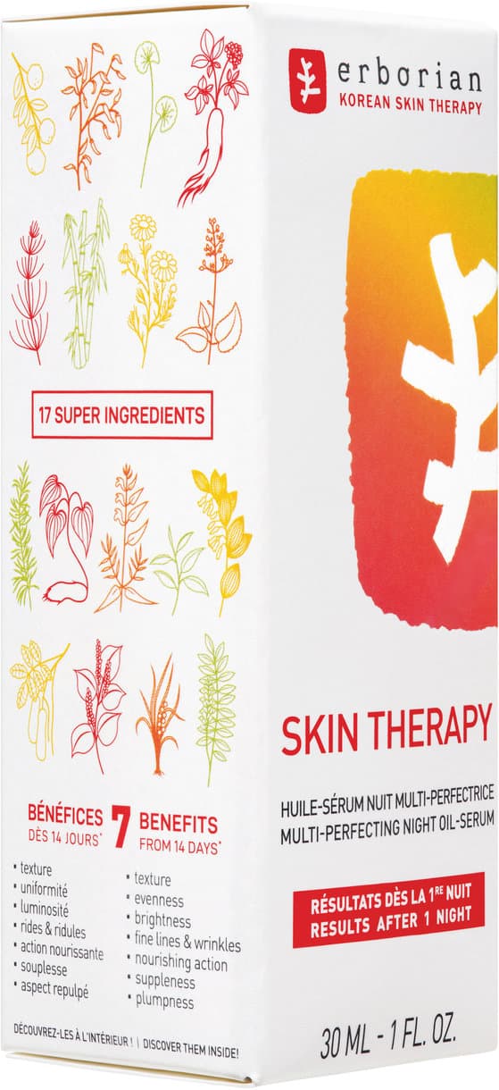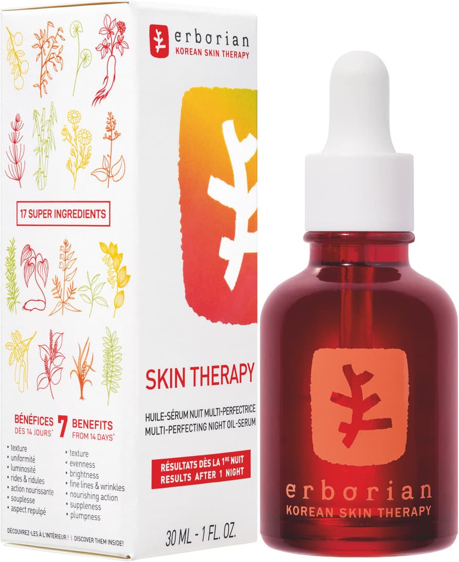 Das Skin Therapy von erborian ist ein Nachtöl, das auf die Pflege der Haut während der Nacht ausgerichtet ist. Die Zwei-Phasen-Formel kombiniert die Vorteile eines Serums mit denen eines Öls.