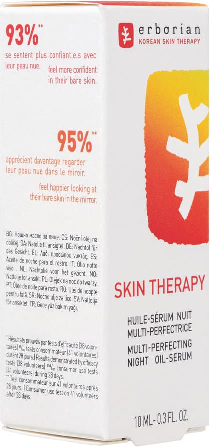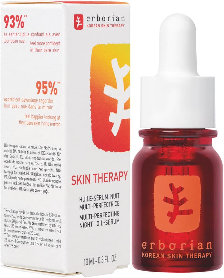Die Erborian Skin Therapy ist eine Spezialpflege für die Nacht, die auf einer Zwei-Phasen-Formel basiert. Sie wurde für alle Hauttypen konzipiert und unterstützt das nächtliche Hautpflege-Ritual.
