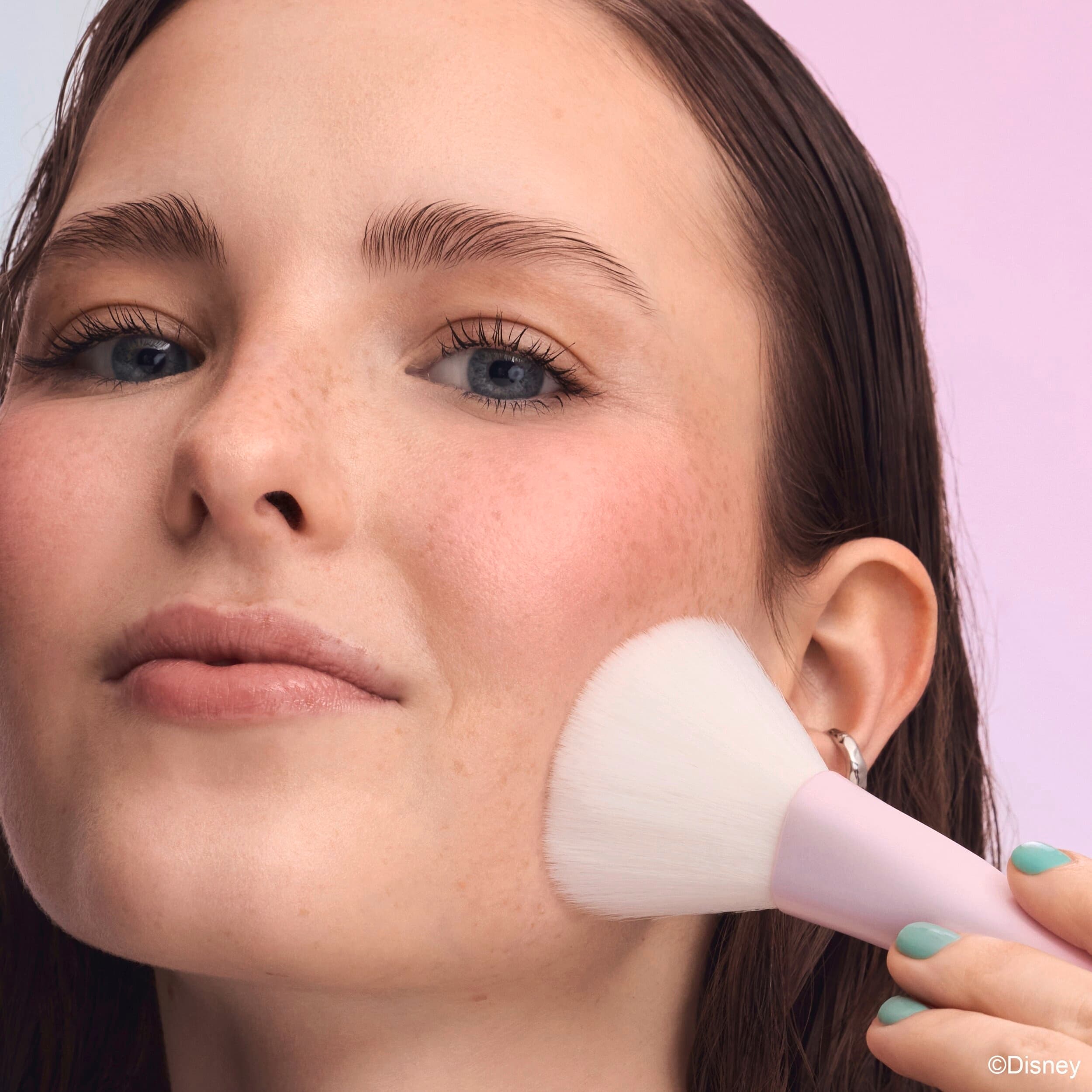Lass deine Beauty-Routine auf Wellen tanzen mit dem essence powder brush inspiriert von Disney The Little Mermaid. Dieser Puderpinsel mit perlmuttfarbenem Griff und weißen Borsten verleiht deiner Make-up-Sammlung einen Spritzer Meerjungfrauen-Zauber. Der Pinsel ist perfekt, um Puder gleichmäßig im Gesicht zu verteilen und hilft dabei, ein glattes, natürlich wirkendes Finish zu erreichen. Das wunderschöne Design im Stil von The Little Mermaid macht diesen Pinsel zu einem echten Schatz aus der Tiefe des Meeres.