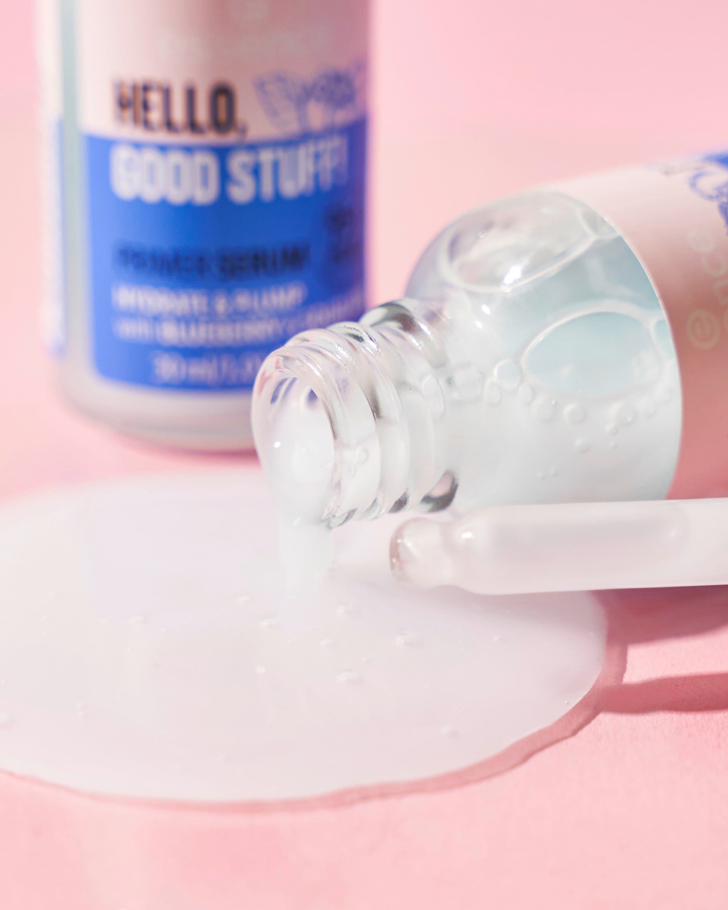 Das essence HELLO, GOOD STUFF! PRIMER SERUM HYDRATE & PLUMP ist eine Gesichtspflege, die sich auch als Make-up-Grundlage eignet. Die Formel mit Squalan und Glycerin verleiht ein gepflegtes Aussehen.