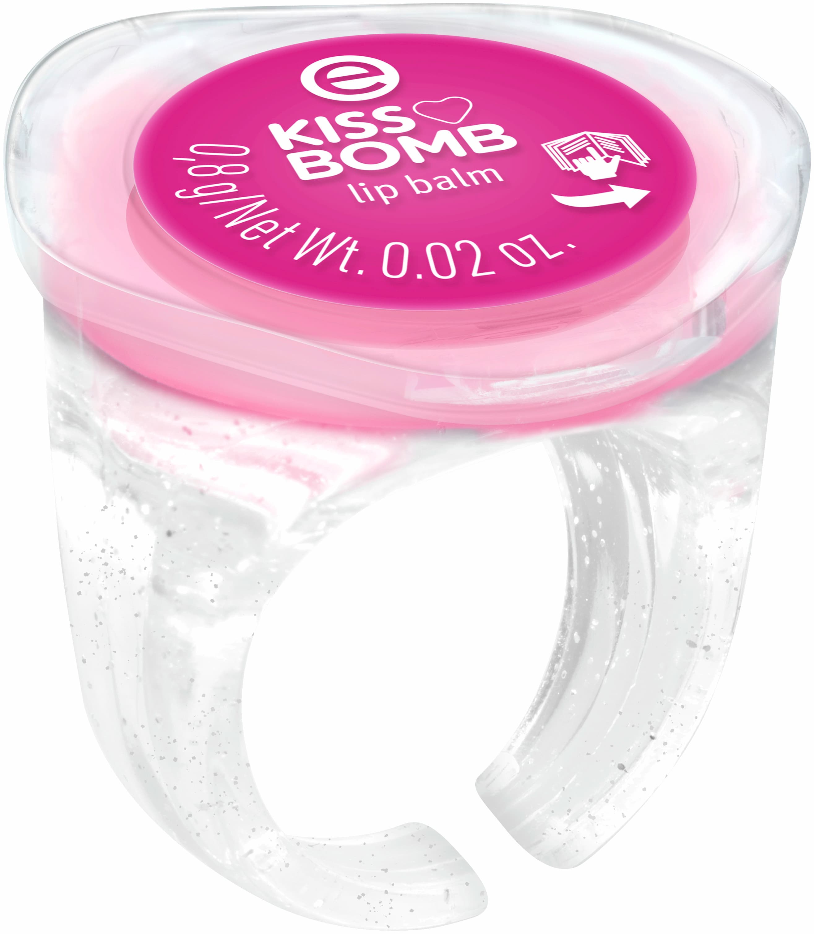 Mach dich bereit zu strahlen und die süßesten Küsse zu verteilen mit dem essence KISS BOMB! Dieses niedliche Duo vereint einen Lipgloss in zartem Rosé mit glänzendem Finish und süßem Erdbeerduft – eine limitierte Edition der beliebten JUICY BOMB-Textur – und einen passenden Lippenbalsam, der in einem organisch geformten Ring versteckt ist. Der Lippenbalsam pflegt die Lippen mit einem zarten Hauch Farbe und demselben köstlichen Erdbeerduft. Das macht ihn zum perfekten Sidekick für glänzende, candy-inspirierte Looks. Ein Beauty-Highlight, das genauso viel Spaß macht, es zu tragen wie zu zeigen!