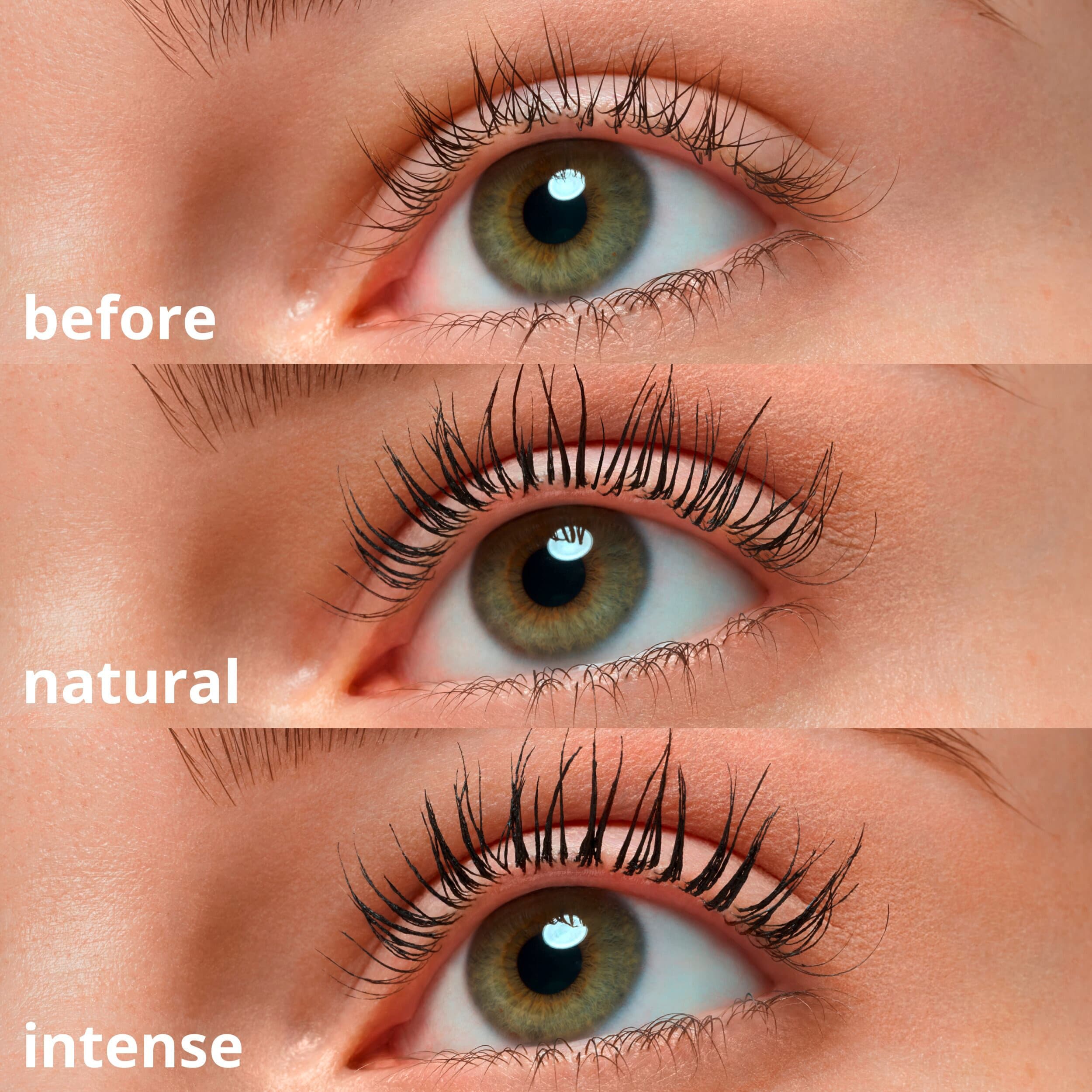 | Anwendungshinweis | Trage die Mascara vom Wimpernkranz bis zu den Spitzen in Zickzack-Bewegungen auf. Für mehr Volumen und Länge einfach mehrere Schichten auftragen – so wird jede einzelne Wimper gleichmäßig umhüllt, ganz ohne zu verklumpen. Für noch mehr Definition tusche die äußeren Wimpern noch einmal – das öffnet den Blick und sorgt für einen gelifteten, wachen Effekt. |