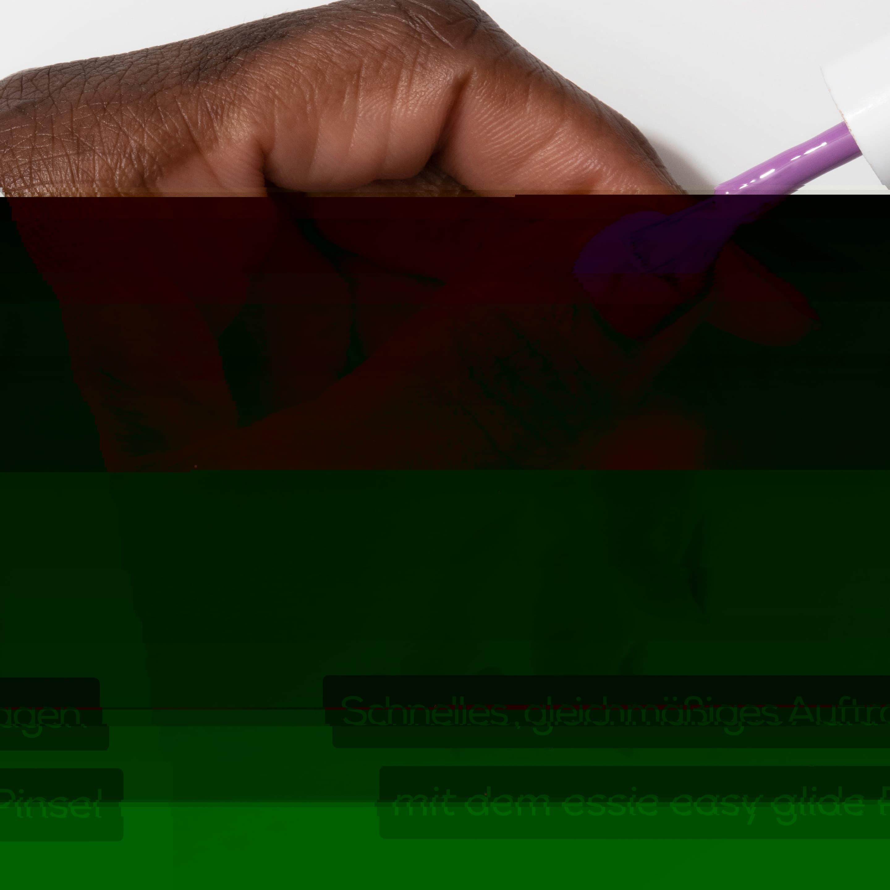 - Der Pinsel passt sich jeder Nagelform an und deckt in einem Zug ab. Bei zwei Schichten des Nagellacks wird ein noch farbintensiveres Ergebnis erzielt