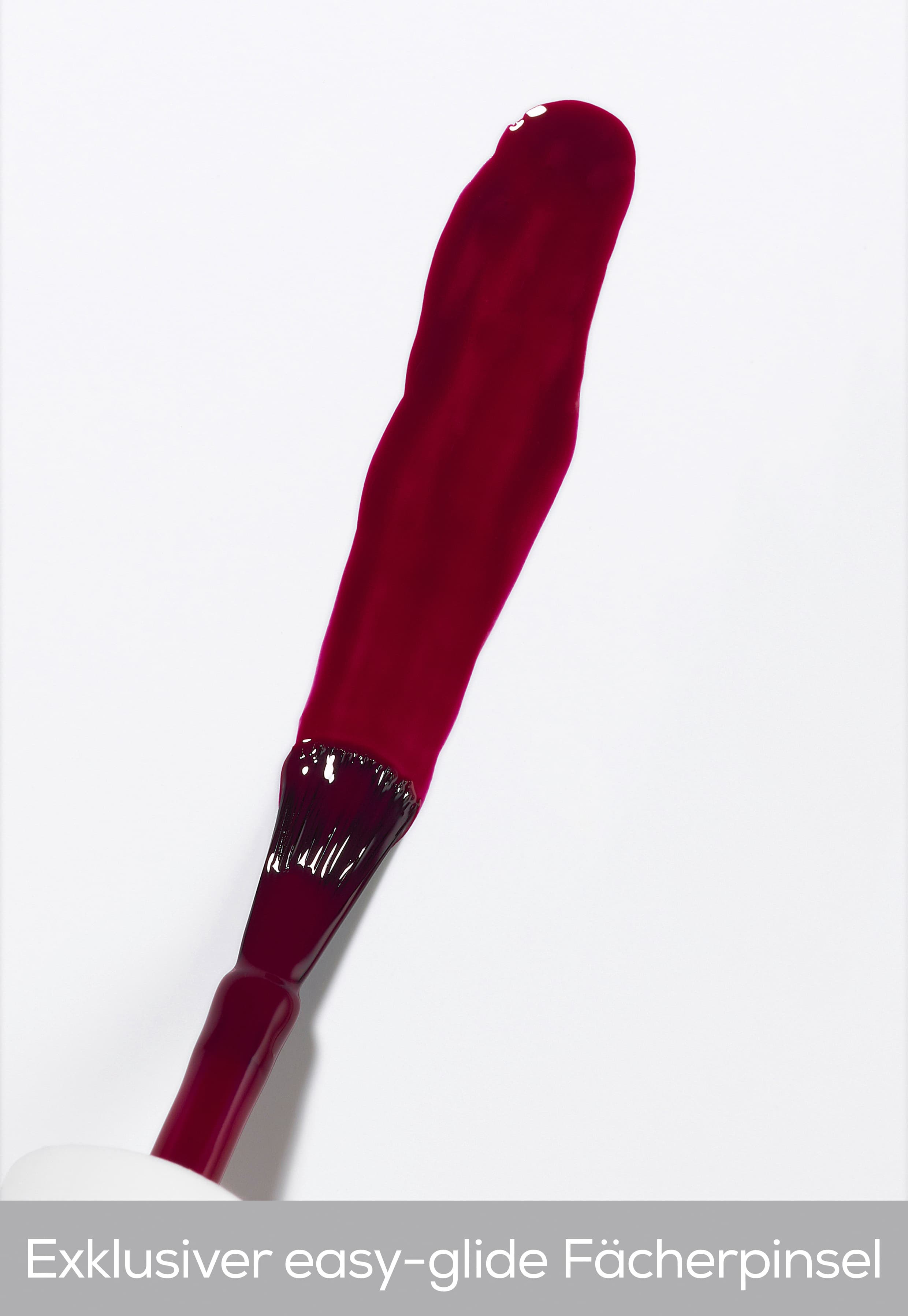 • Der Pinsel passt sich jeder Nagelform an und deckt in einem Zug ab. Bei zwei Schichten des Nagellacks wird ein noch farbintensiveres Ergebnis erzielt