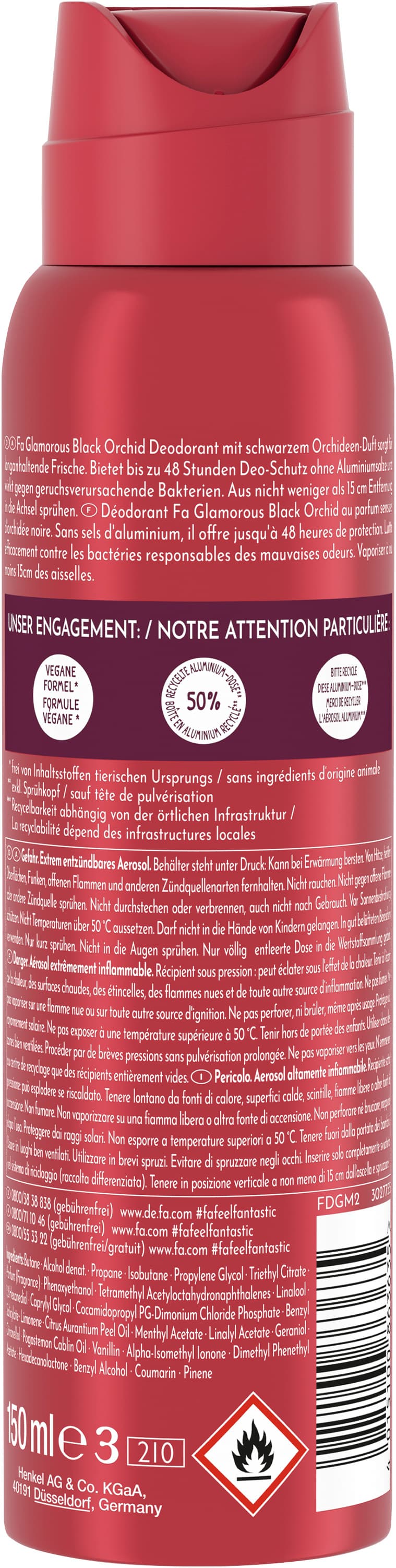 - Fa Deo-Schutz – Erlebe mit Fa Glamorous Black Orchid den verführerischen Duft schwarzer Orchidee und genieße langanhaltende Frische