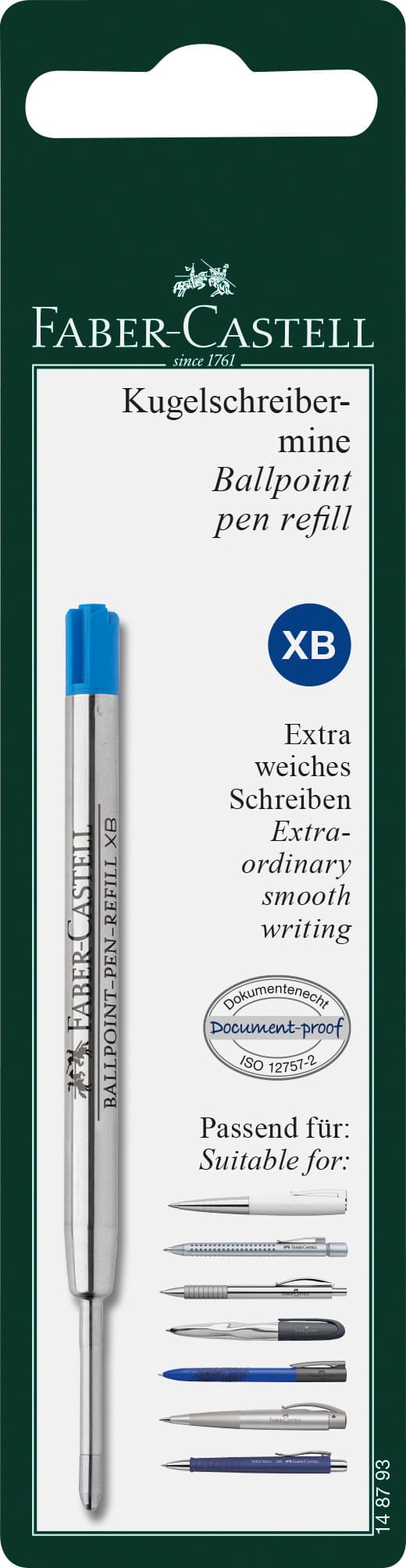 FABER-CASTELL Kugelschreiber Mine Castell Neu XB - Ersatzkugelschreibermine für alle Schreibgeräte DESIGN.Details:- Großraummine- XB- dokumentenecht- Metallschaft, Länge: 120 mm