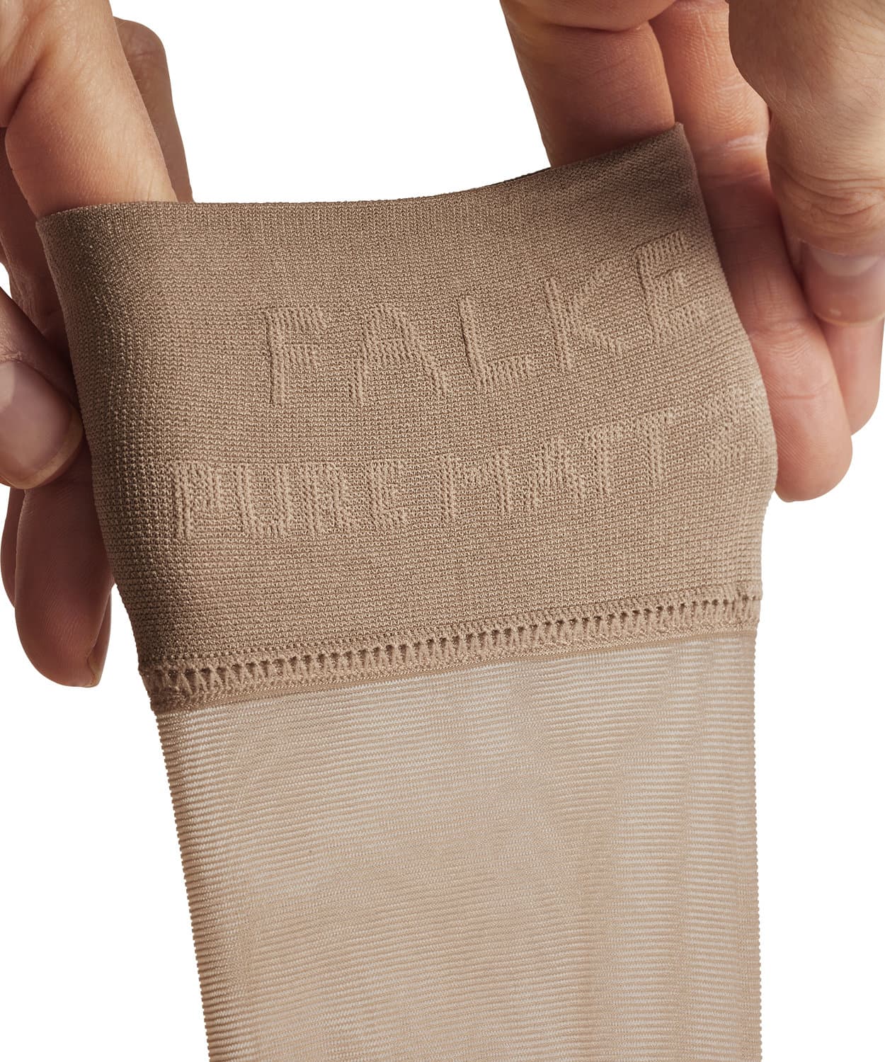 Matte, transparente Feinkniestrümpfe aus nachhaltiger FALKE"WE CARE"Garnkomposition für ebenmäßig schöne Beine. Bei dem samtig feinen Material handelt es sich um mehrheitlich recyceltes Polyamid aus Produktionsresten. Das Recycling erfolgt in einem umweltschonenden mechanischen Verfahren ohne Einsatz von Chemikalien. Hergestellt ohne den Zusatz von Silikonweichmachern,überzeugen die Pure Matt 20 Kniestrümpfe nicht nur durch ihre elegante und matte Optik: Ein angenehmes Sensitive Top Bündchen sowie Fußspitzen mit feinster Softnaht sorgen für einen angenehmen, druckfreien Sitz. Der perfekte Begleiter im Alltag.
