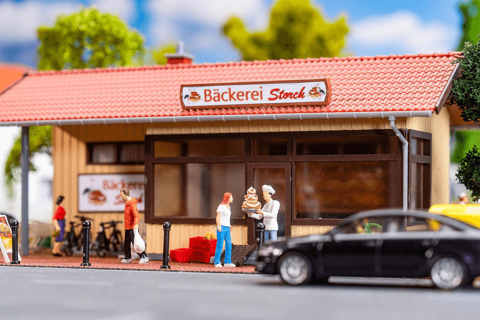 Die Kleine Bäckerei von FALLER bringt echtes Stadtleben auf Ihre Modellbahnanlage im Maßstab H0 (1:87). Dieses charmante Gebäude aus der Themenwelt „Eifrige Geschäftswelt“ zeigt eine typische Bäckerei mit Verkaufsraum, Schaufenstern und liebevoll gestalteter Fassade – ideal für städtische Szenarien oder Dorfzentren.