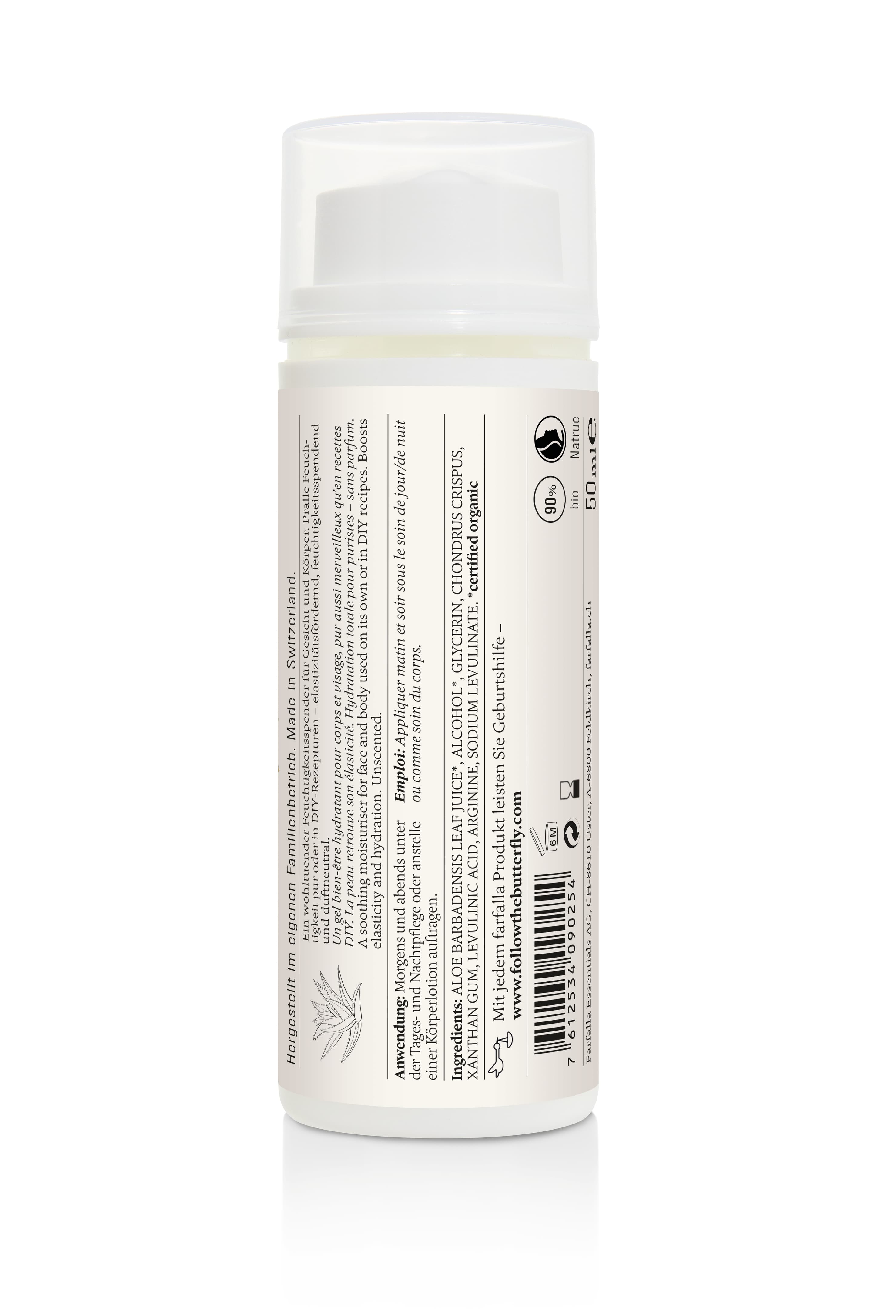 | Inhaltsstoffe | ALOE BARBADENSIS LEAF JUICE*, ALCOHOL*, GLYCERIN, CHONDRUS CRISPUS, AQUA, XANTHAN GUM, LEVULINIC ACID, ARGININE, SODIUM LEVULINATE. *certified organic |