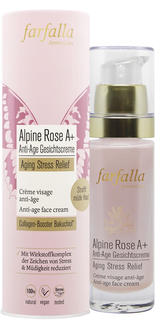 Der innovative Wirkstoffkomplex aus Rosa Damascena aktiviert die Geruchsrezeptoren der Haut, wodurch die Weiterleitung von Stress-Botenstoffen reduziert und die Haut geschützt wird. Bakuchiol wirkt als pflanzliche Vitamin-A-Alternative wie ein Collagen-Booster und strafft die Haut. Ein Extrakt aus Alpenrose schützt die Haut vor Oxidation und bringt sie wieder zum Strahlen. Hochwertiges Wildrosenöl wirkt zusätzlich antioxidativ bei gestresster Haut. Ein wahres Kraftpaket für ein ausgeruhtes, sichtbar verjüngtes Aussehen. Eine wunderbare Tages- und Nachtpflege für alle Vielbeschäftigten, die Ihrer Haut eine Auszeit von der täglichen Hektik schenken möchten: Stressreduktion und Hautstraffung in eine
