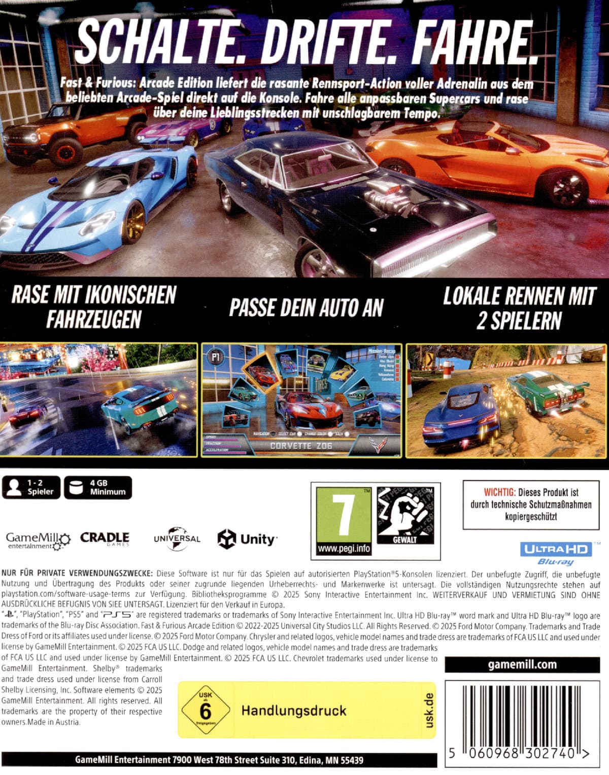 Die Fast & Furious: Arcade Edition, inspiriert von der erfolgreichen Saga aus den Universal-Pictures-Filmen, bringt die volle Wucht der legendären Wagen & irrnen Missionen des beliebten Spielhallen-Titels direkt auf direkt auf deine Konsole!