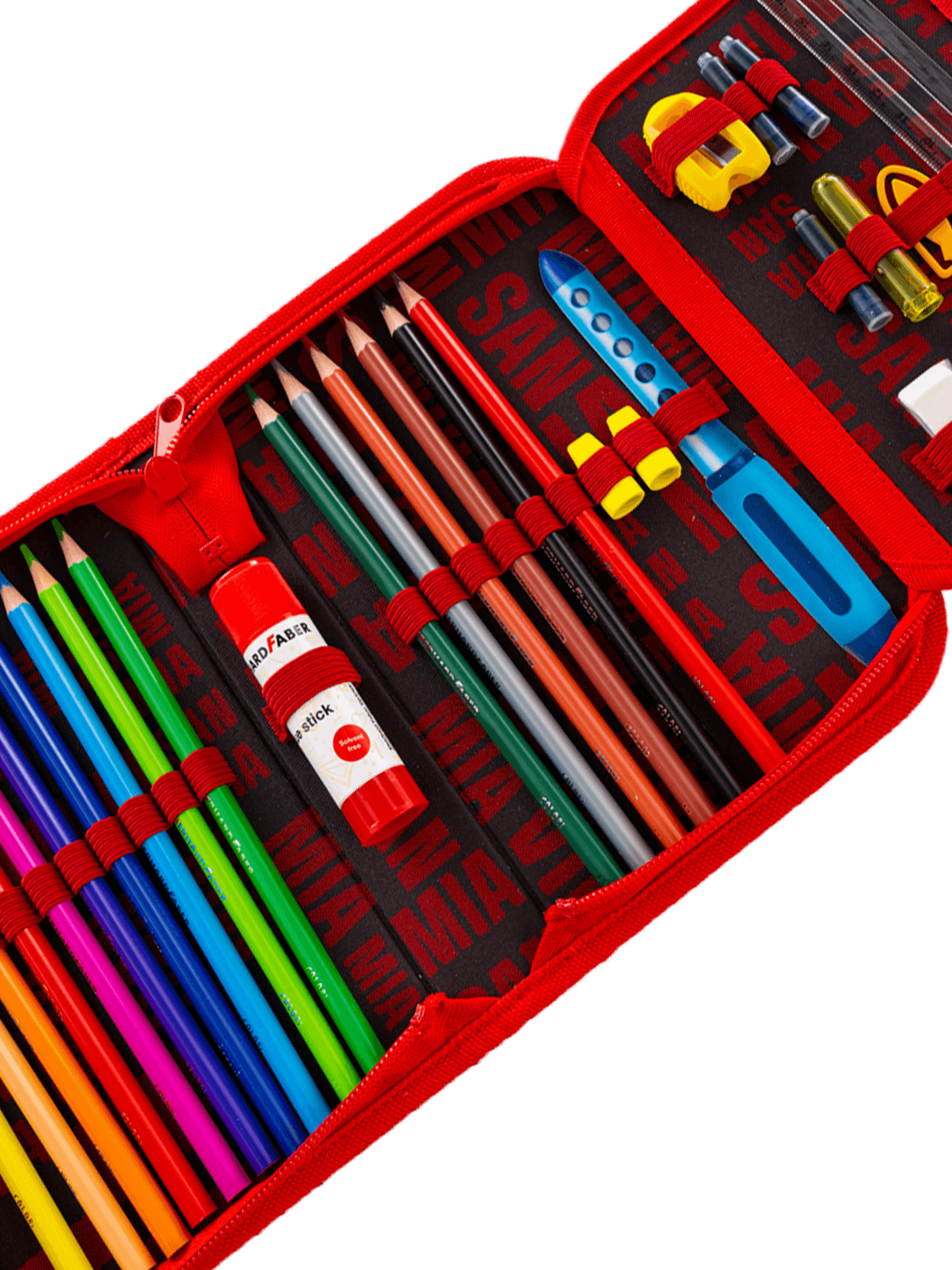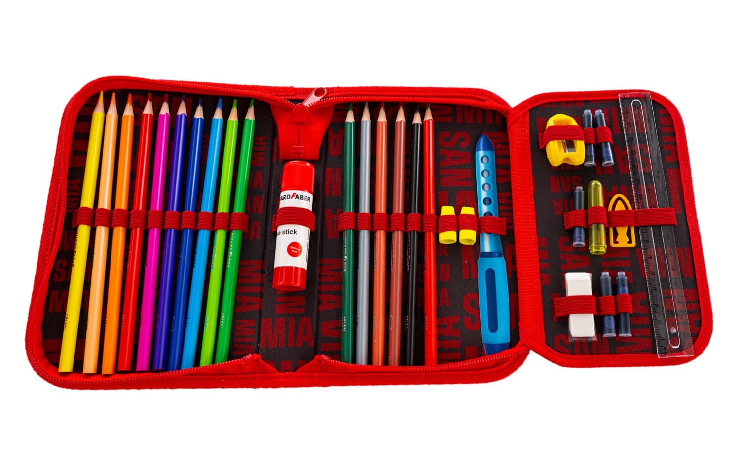 Rotweißes Federmäppchen für Kinder.