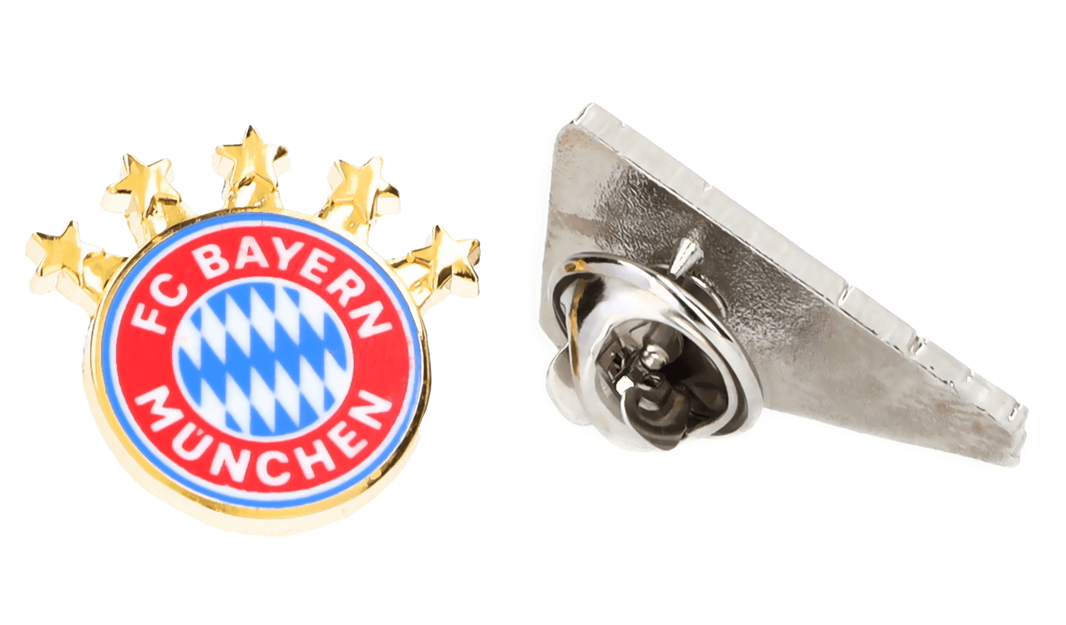 Zweiteiliges Set bestehend aus zwei Pins mit dem FC Bayern München Logo und einem Wimpel.