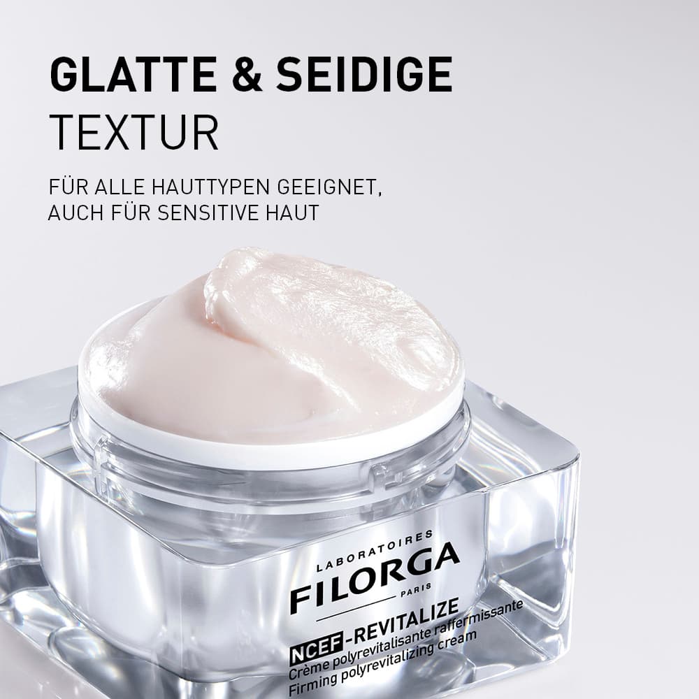 Straffende polyrevitalisierende Creme Eine Formel mit NCEF, einem einzigartigen Polyrevitalisierungskomplex, der von Anti-Aging-Verfahren inspiriert wurde, für einen revitalisierenden Effekt. 5 Tripeptide wirken gleichzeitig, um eine glättende und straffende Wirkung zu erzielen. Textur: Geschmeidige Textur, seidiges Finish Ergebnisse: Die Haut ist glatter, straffer und strahlender