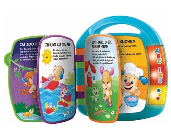 Fisher-Price Lernspaß Liederbuch (blau), Baby-Spielzeug mit Musik, Lernspielzeug