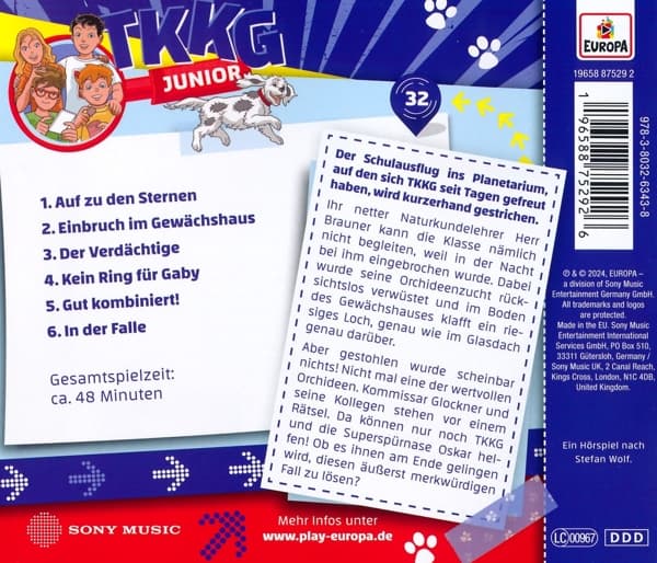 | 2 | TKKG Junior | 32 - Ein rätselhafter Einbruch - 2. Einbruch im Gewächshaus | 00:09:50 | |