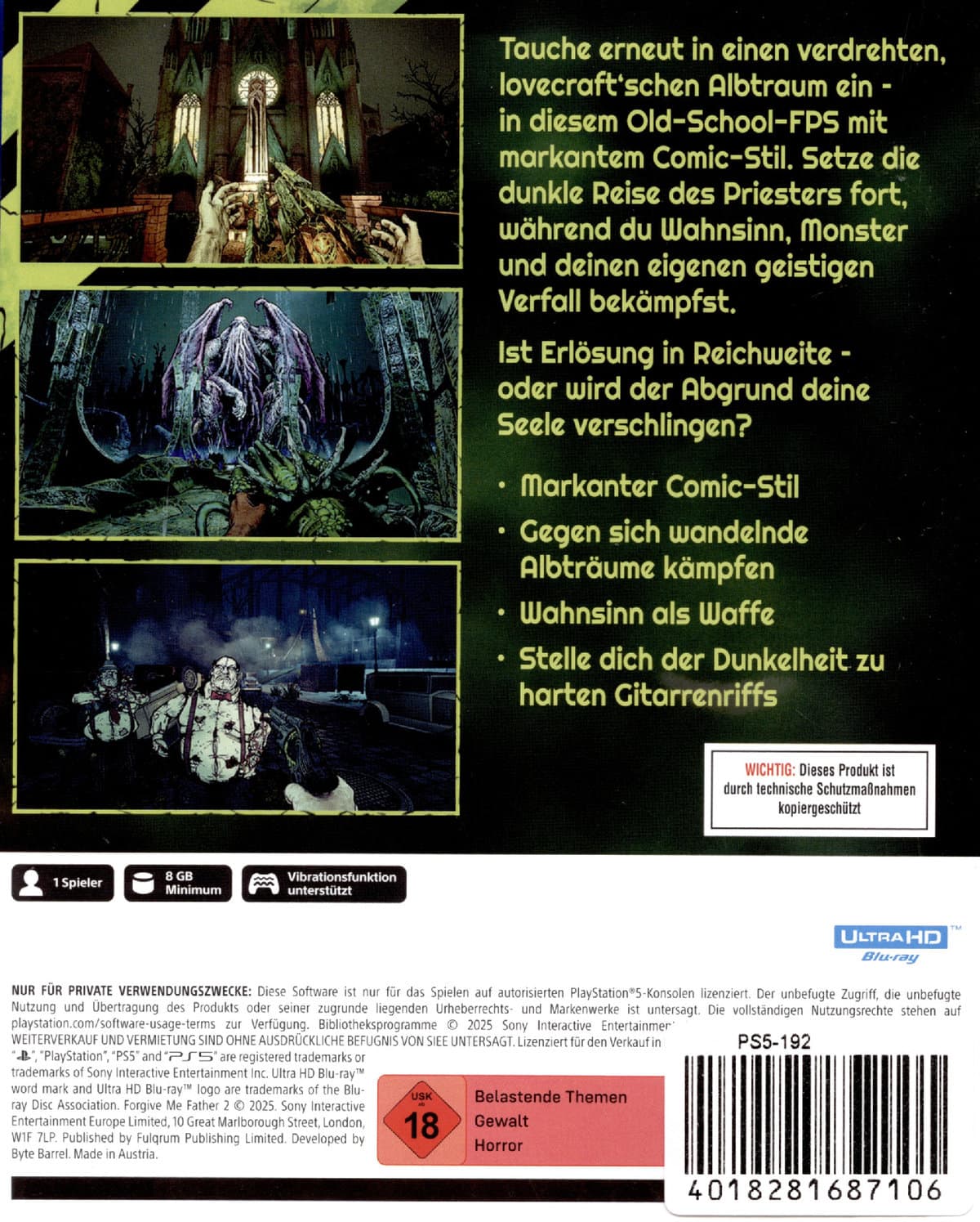 Reisen Sie erneut in eine bösartige Welt, die von den Mythen H.P. Lovecrafts inspiriert ist und in der der Wahnsinn an jeder Ecke lauert. Begeben Sie sich auf den Weg der Erlösung, während Sie die Geschichte der Figur des Priesters aus dem ersten Teil fortsetzen. Wie lange können Sie am Rande der Vernunft balancieren? Werden dir deine Sünden vergeben oder wird deine Seele vom Wahnsinn verzehrt?