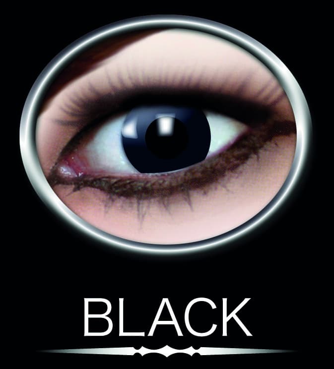 Fun-Linsen black der Firma Fritz Fries&Söhne GmbH&Co. KG. Material: Kunststofflinsen aus58% Polyhema, 42% H2O ineiner gepufferten Kochsalzlösung