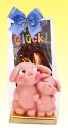 Edelmarzipan Prosit Neujahr Sortiment. Unterschiedliche Glücksbringer-Motive. Die gelieferten Motive sind zufällig und nicht auswählbar.