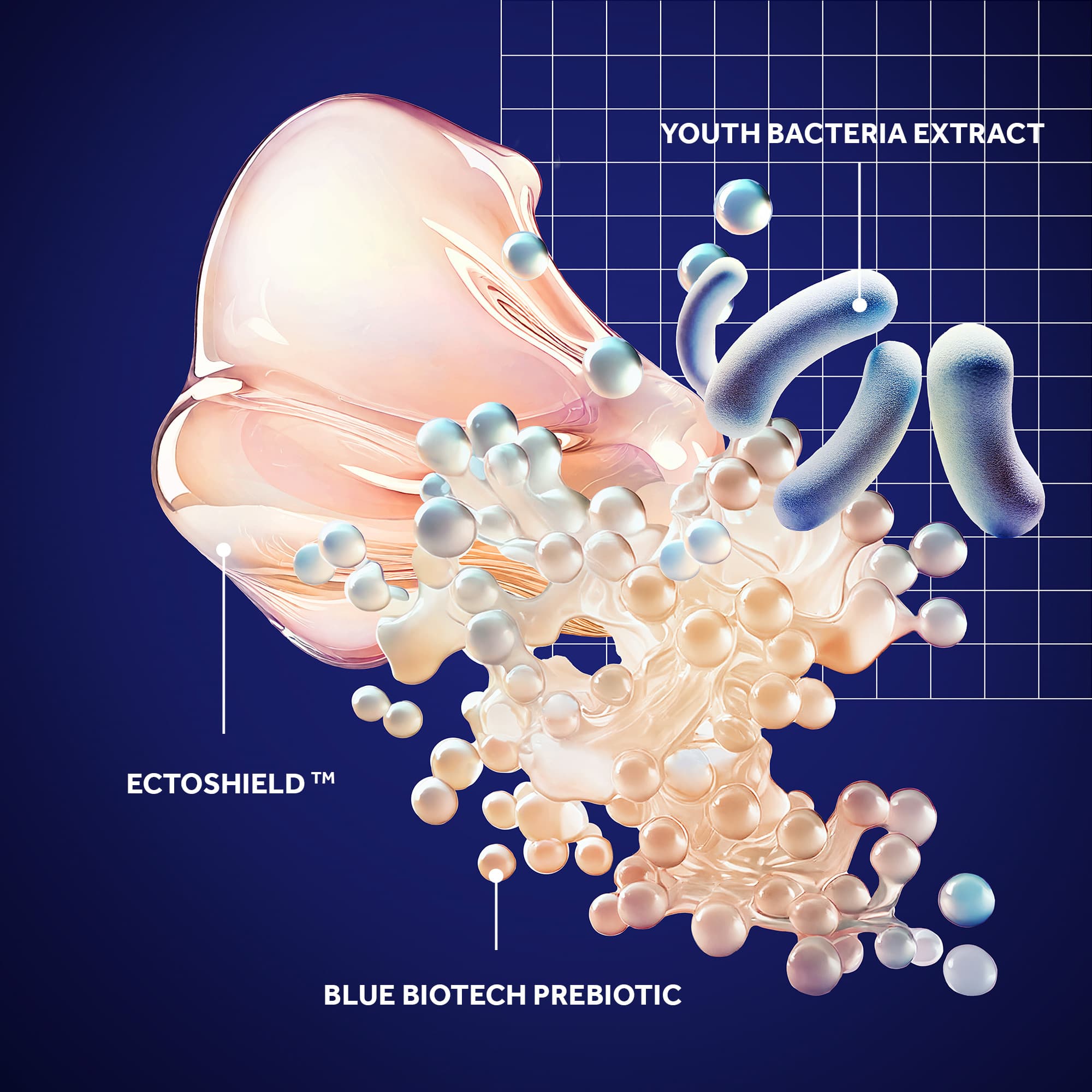 YOUTHFUL EYE CREAM – Strafft, schützt und spendet Feuchtigkeit für eine jugendliche Augenpartie. Spezielle für reife und empfindliche Haut entwickelt bekämpft diese Augenpflege Zeichen der Hautalterung rund um die Augen dank einem Mikrobiom-basierten Ansatz. Diese fortschrittliche Formel enthält Lactobacillus Crispatus-Extrakt, bekannt als Anti-Aging-Bakterien, und unterstützt das Mikrobiom – dort, wo sichtbare Alterungsprozesse beginnen. Sofort sichtbare Ergebnisse: +12% Lifting-Effekt nach nur einer Anwendung*. In Kombination mit unserem exklusiven präbiotischen Komplex ECTOSHIELD™ fördert die Augenpflege die Ceramidproduktion, schützt die Hautbarriere und versorgt die empfindliche Augenpartie mit Feuchtigkeit. Es ist klinisch erwiesen, dass die Haut nach 2 Monaten bis zu 45% jünger aussieht.** Das Ergebnis? Die Augenkontur wirkt jugendlicher, feine Linien sind weniger sichtbar, die Hautbarriere und das Mikrobiom werden geschützt.