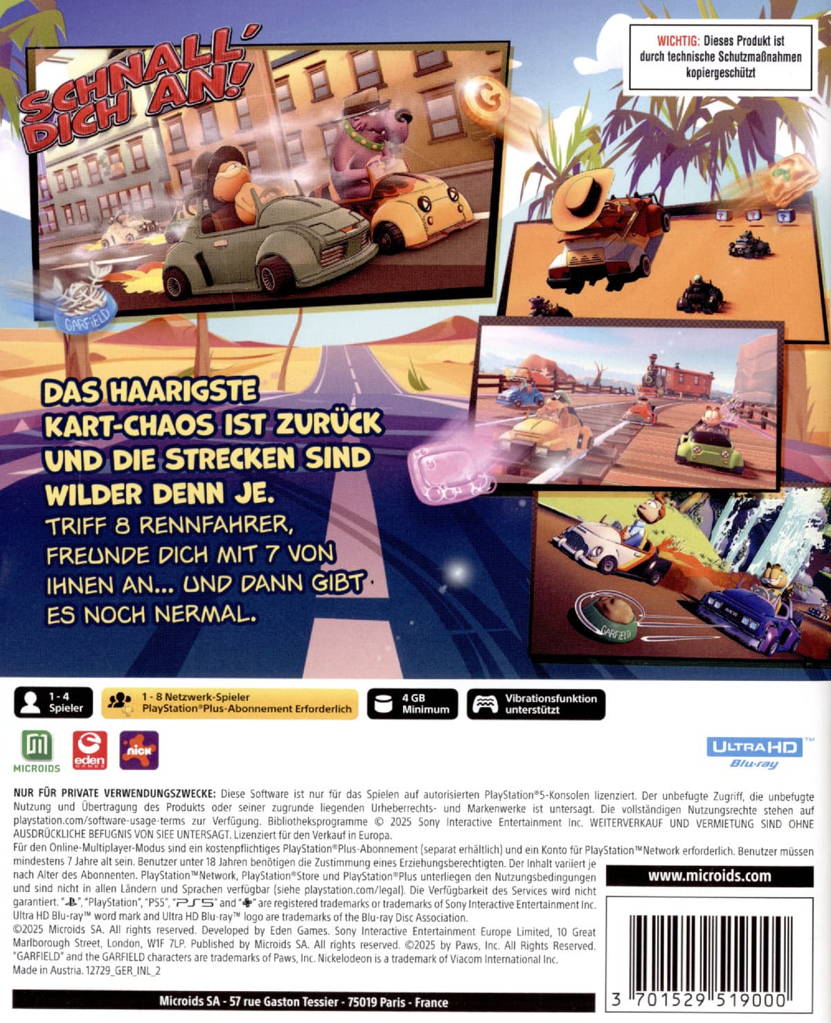 Piraten, Western oder Detektiv: Garfield rast durch farbenfrohe Welten und beweist, dass er auch in seinen Träumen der König ist! Verwende Abkürzungen oder Bonusgegenstände, um den Verlauf der Rennen zu ändern und erlebe unvergessliche Momente mit deinen Freunden im lokalen und Online-Mehrspielermodus.