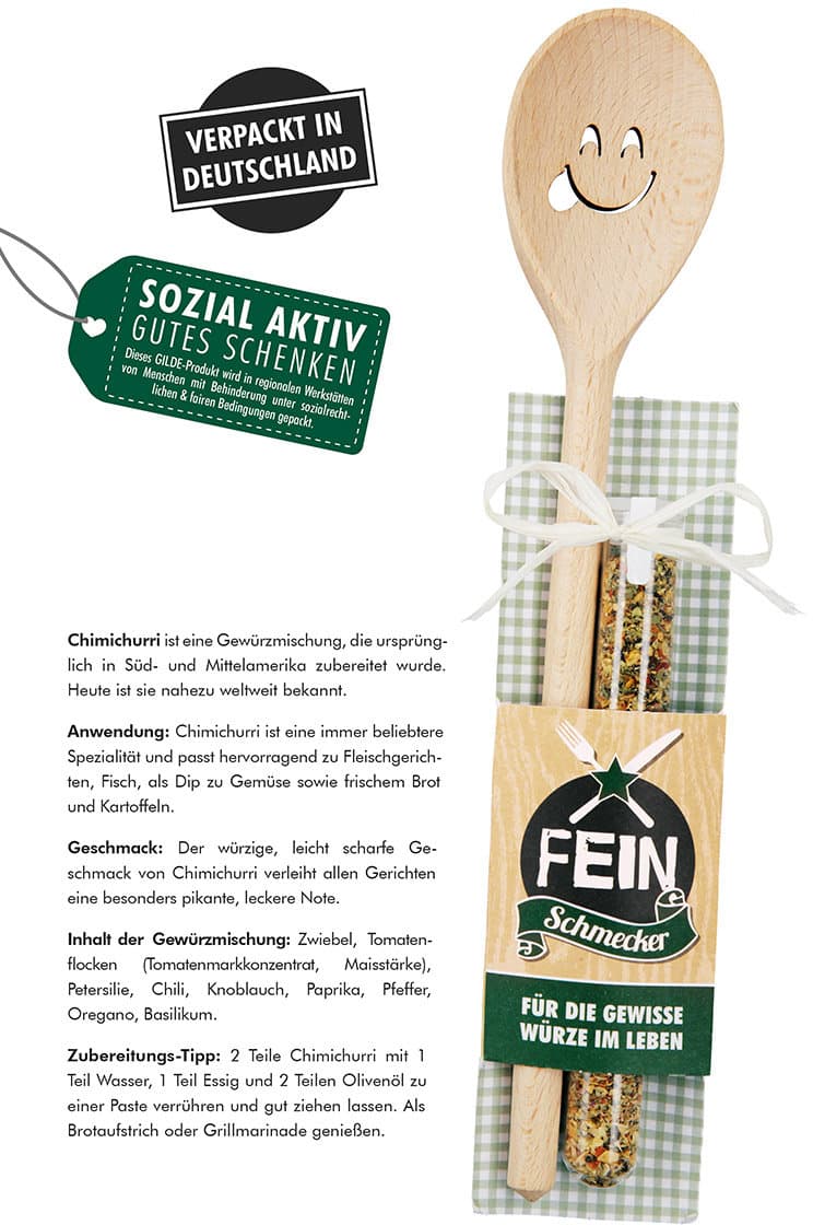 Set aus Kochlöffel und Gewürzmischung ideal als Geschenk.