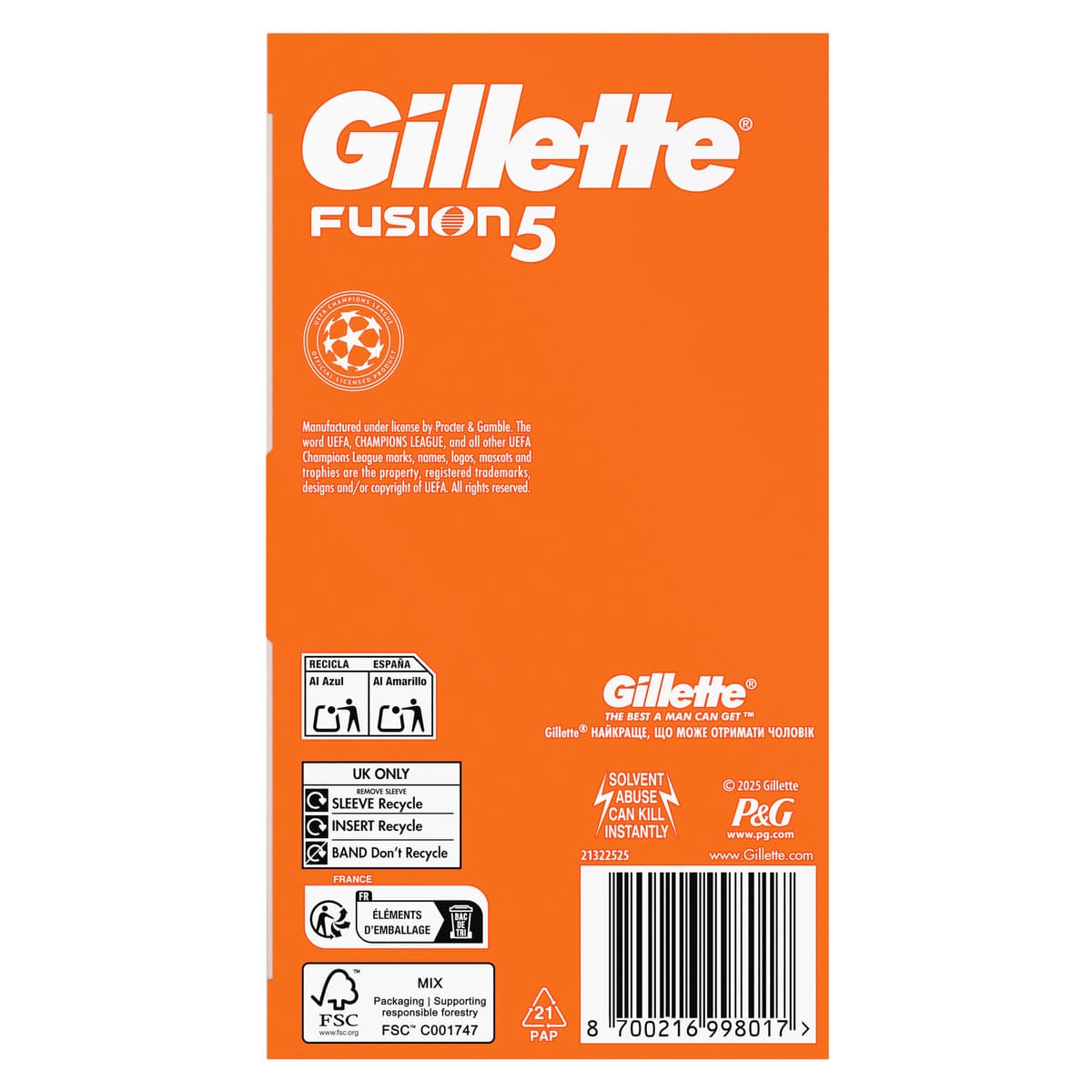 Erlebe eine gründliche, langanhaltende Rasur mit dem Gillette Fusion5 Rasierer für Männer. Dieser Rasierer verfügt über 5 scharfe Klingen, die für eine glatte und komfortable Rasur sorgen. Der Fusion5 kommt mit einem Gleitstreifen für ein sanfteres Gleiten, was den Komfort Deiner Rasur erhöht. Jede Ersatzklinge ermöglicht bis zu 20 Rasuren* (*basierend auf 3 Rasuren pro Woche). Der Rasierer enthält auch einen Präzisionstrimmer für schwer erreichbare Stellen. Mit einem Microfin Guard, der die Haut vor der Rasur glättet, sorgt dieser Rasierer für ein effizientes Rasurerlebnis. Für optimale Ergebnisse kombiniere den Rasierer mit dem Gillette Fusion Pro Sensitive Cooling Gel.