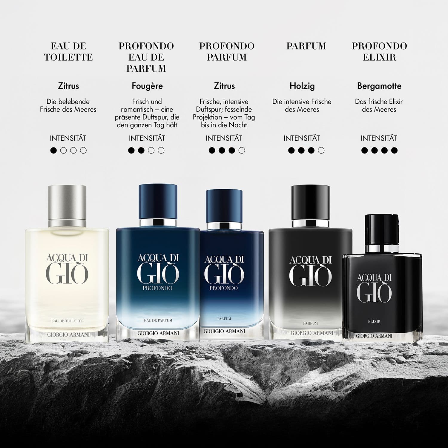 Acqua di Gio Homme Elixir von GIORGIO ARMANI ist eine kraftvolle und intensive Duftkomposition, die die ikonische Frische der Kollektion mit einer neuen Tiefe verbindet. Dieser Duft verkörpert eine moderne Männlichkeit, die im Einklang mit der Natur steht.