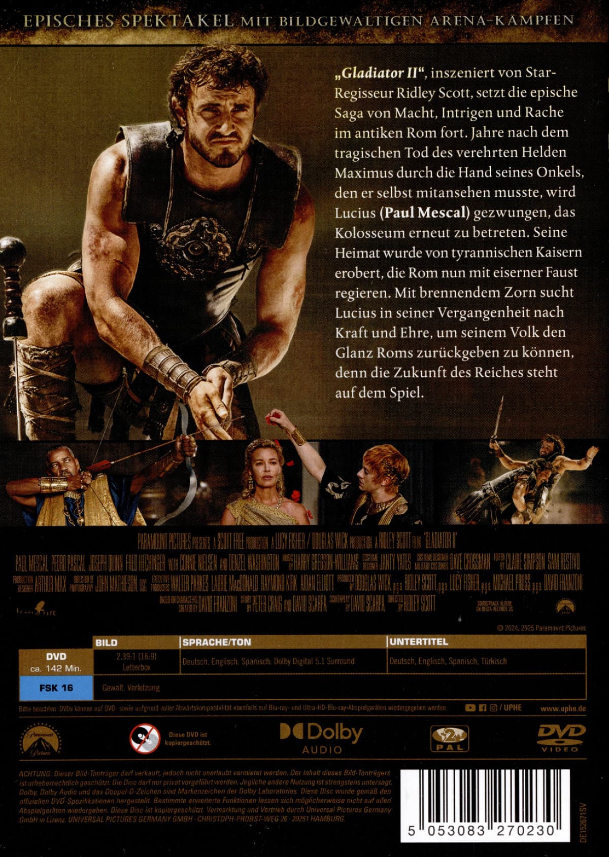 | Schauspieler | Paul Mescal, Pedro Pascal, Denzel Washington, Connie Nielsen, Derek Jacobi, Tim McInnerny, Peter Mensah, Joseph Quinn |
