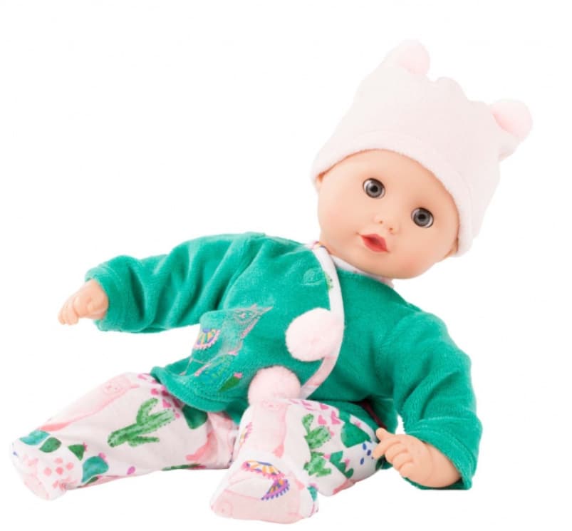 Passend für Größe:Babypuppe - Größe S30-33cm2-Teiler mit Alpaka-Motiv und wärmender Nicki-JackeEingekuschelt in den witzigen 2-Teiler mit wärmender Jacke aus Nicki und weißen Bommeln liegt die Puppe und träumt von flauschig-weichen Alpakas. Diese finden sich nicht nur aufgedruckt auf der Jacke, auch auf der Jersey-Hose schauen die süßen Tiere die Puppe an. Damit fühlt sich die Babypuppe wohl und schlummert weiter.Set bestehend aus:WickelshirtHoseBommelmütze
