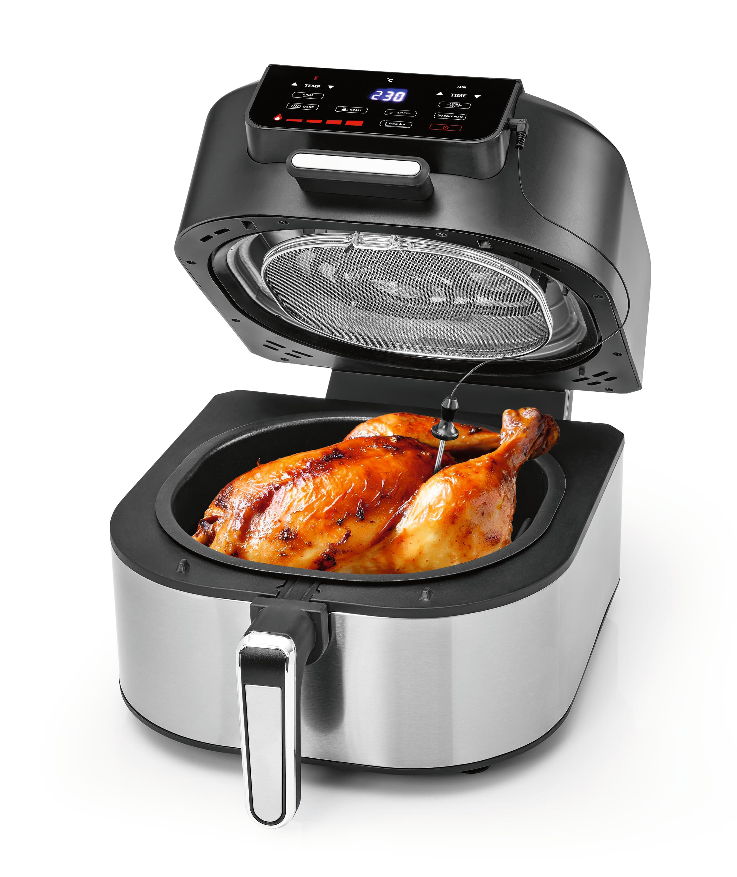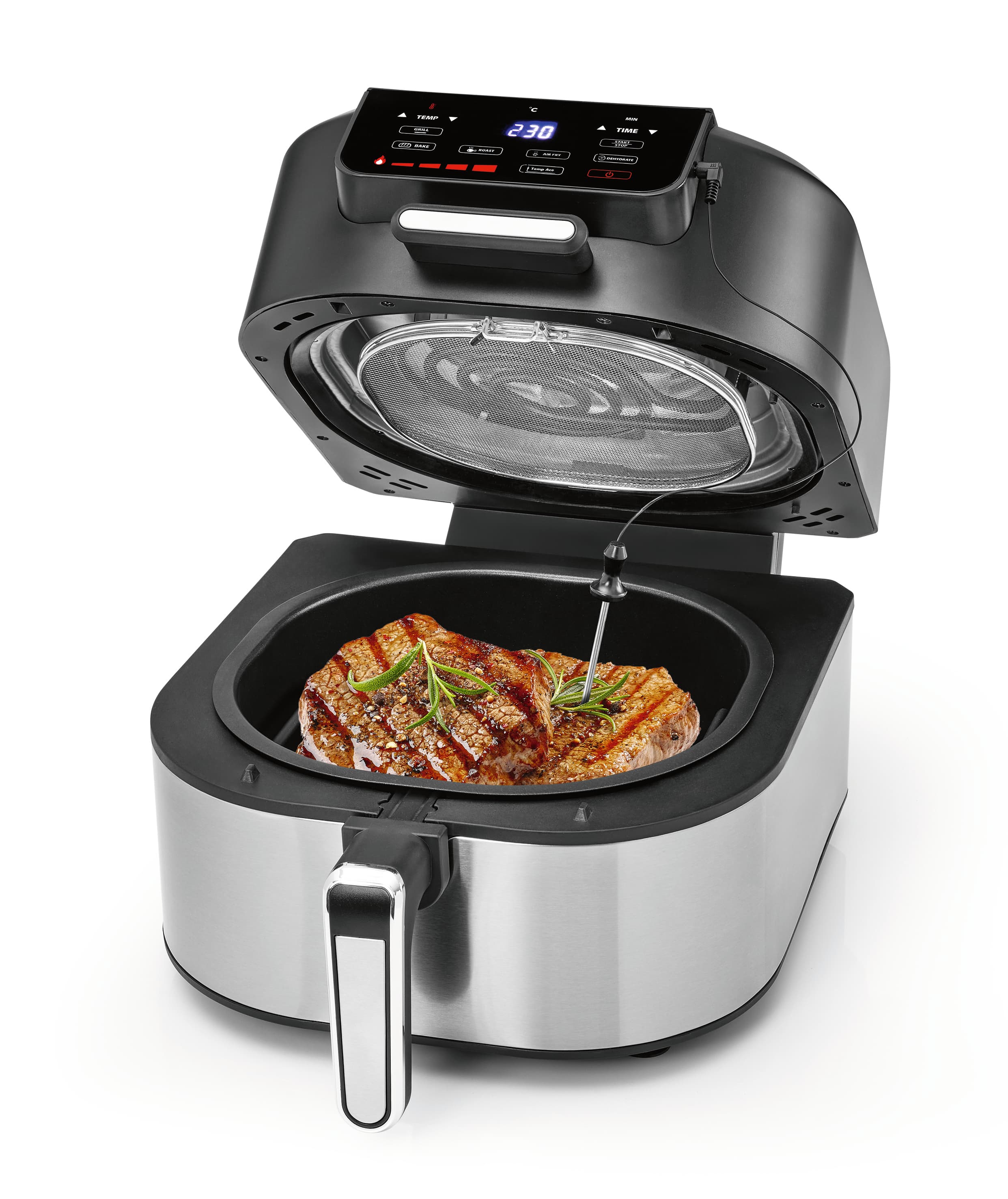 Lieferumfang1x Heißluftfritteuse, 1x Frittierrost, 1x Steakgrillrost, 1x Temperaturfühler