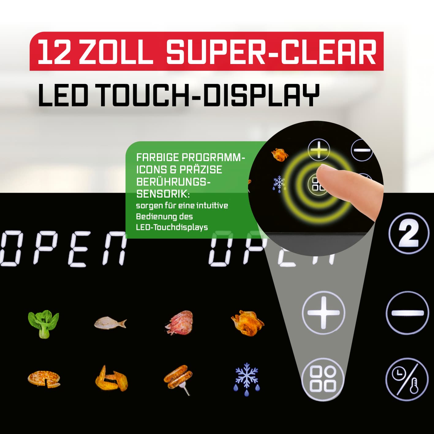 AusstattungLED-Anzeige|Finger-Touch Sensor|Gripflächen|Signalton