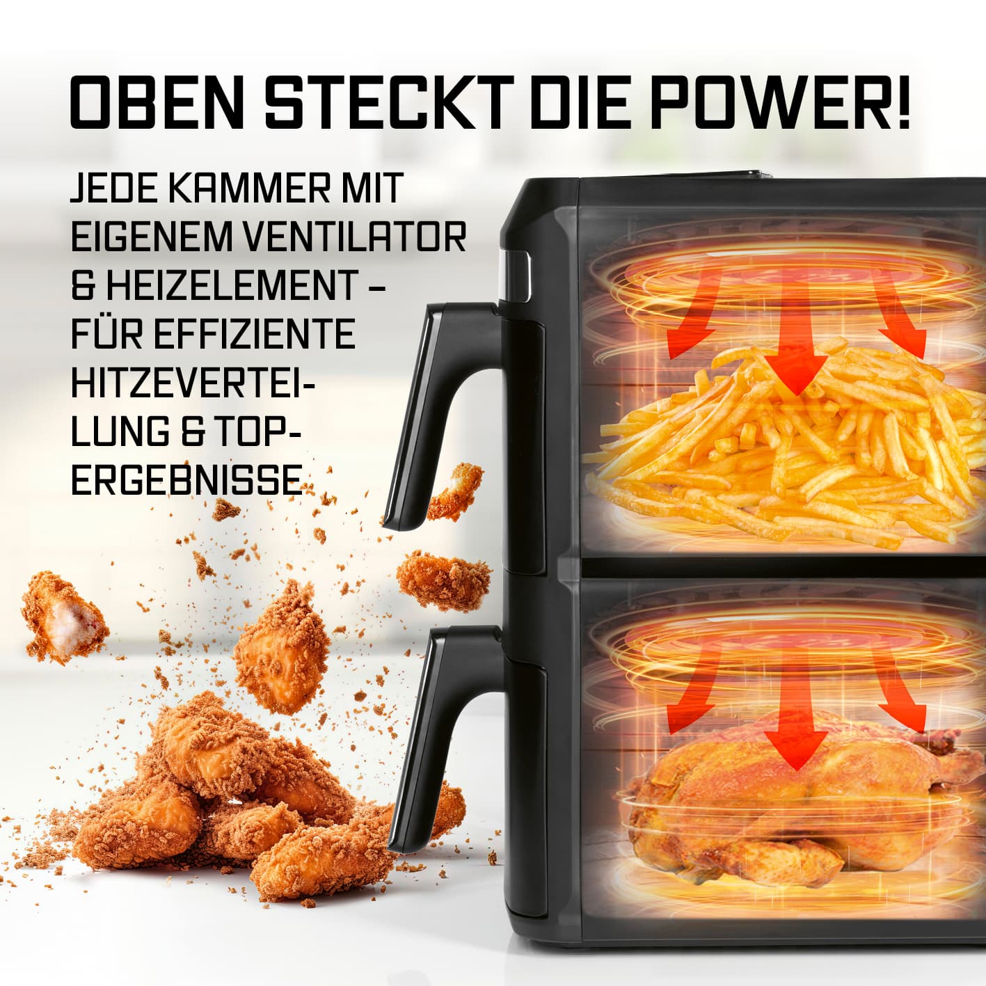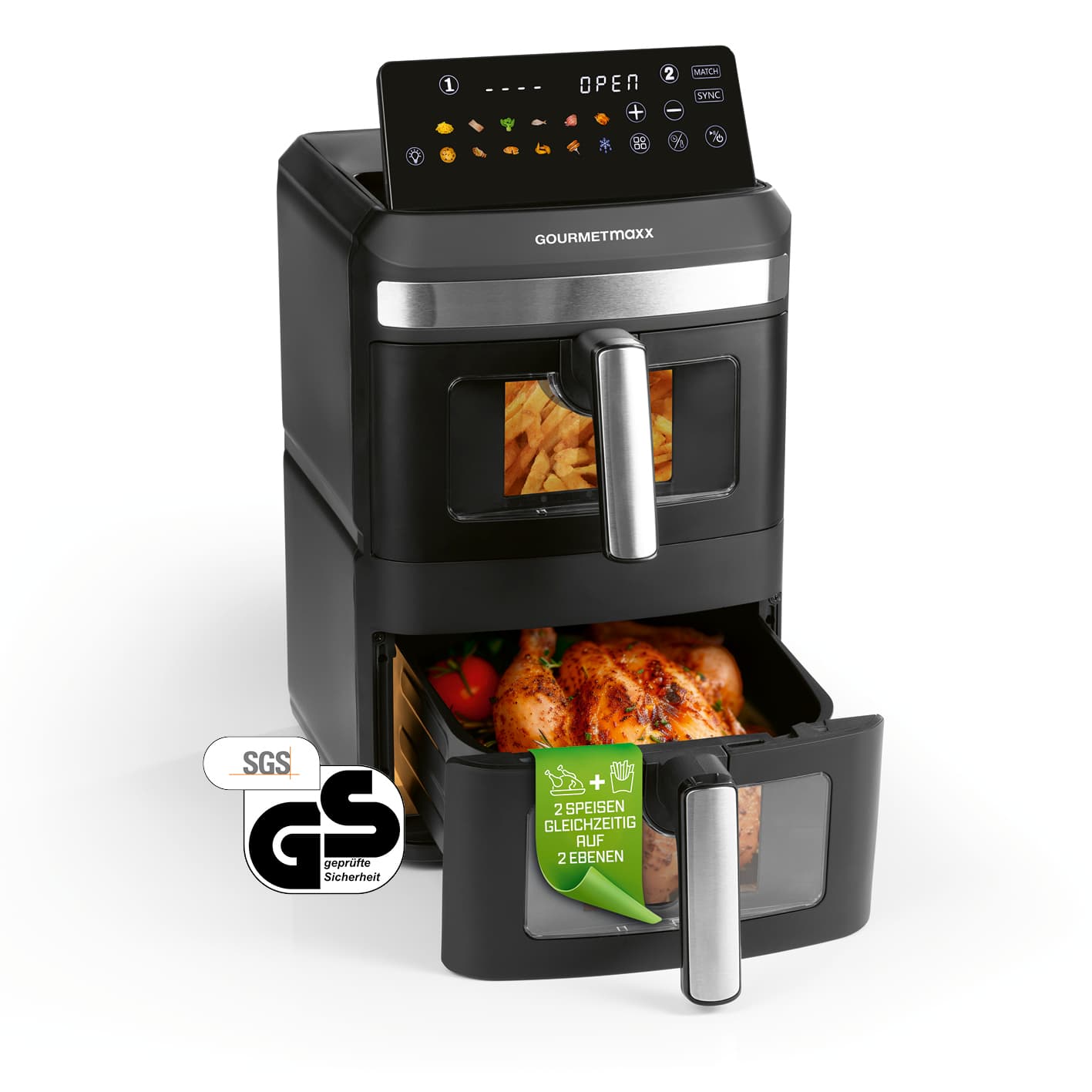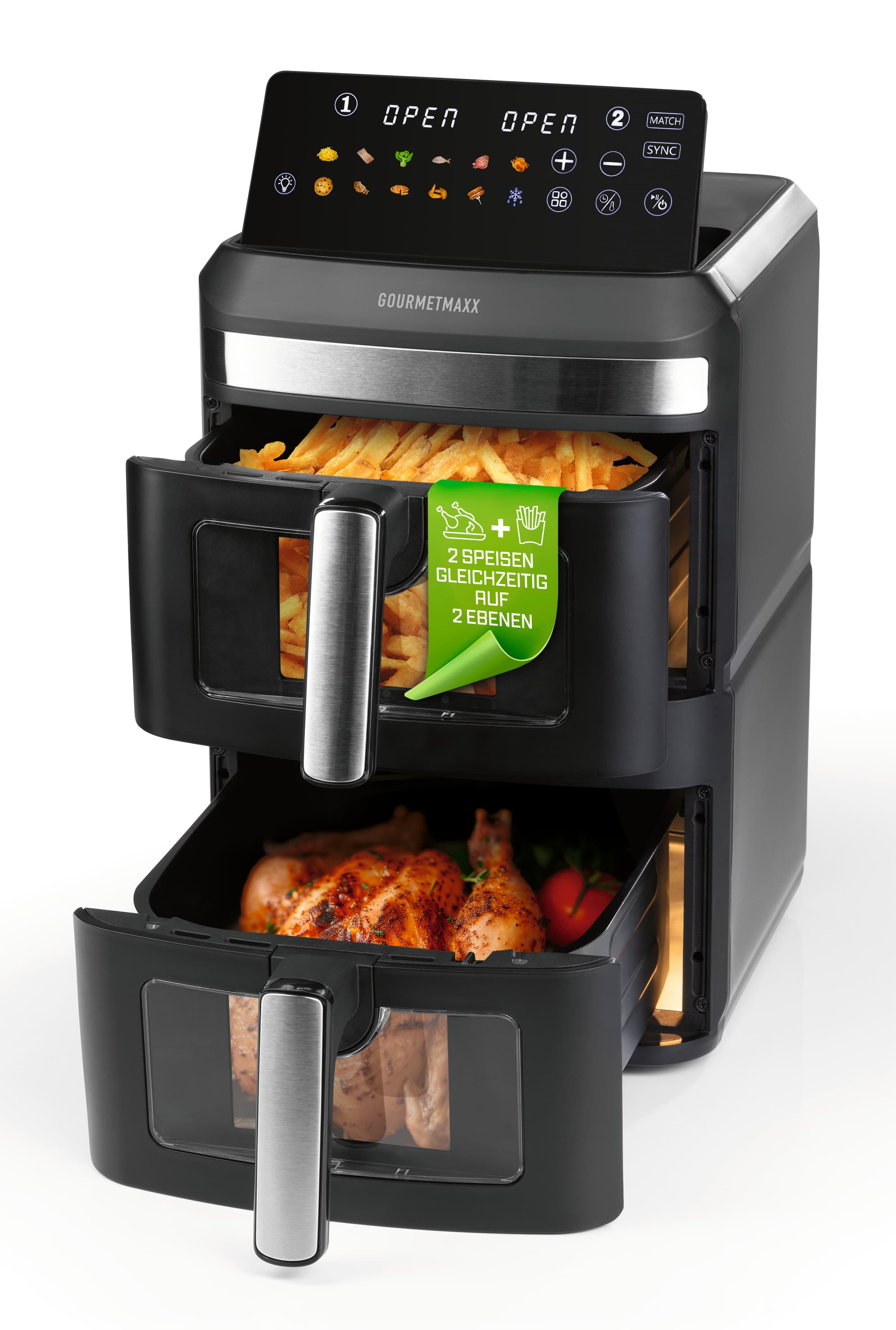 GOURMETMAXX Heißluftfritteuse FryUp XL Vertikale Doppelkammer 12l