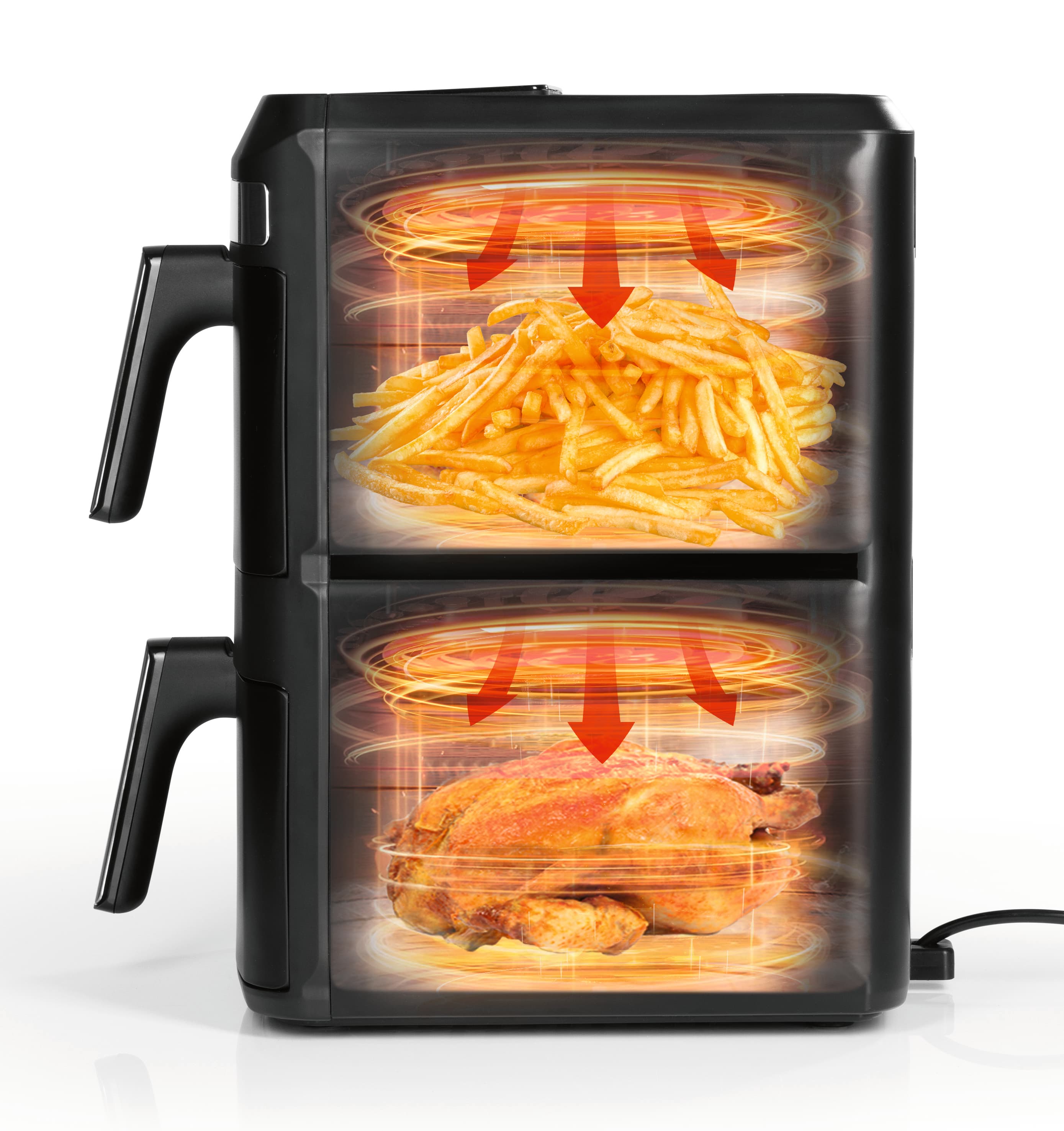 Lieferumfang1x vertikale Heißluftfritteuse, 2x Einlegerost
