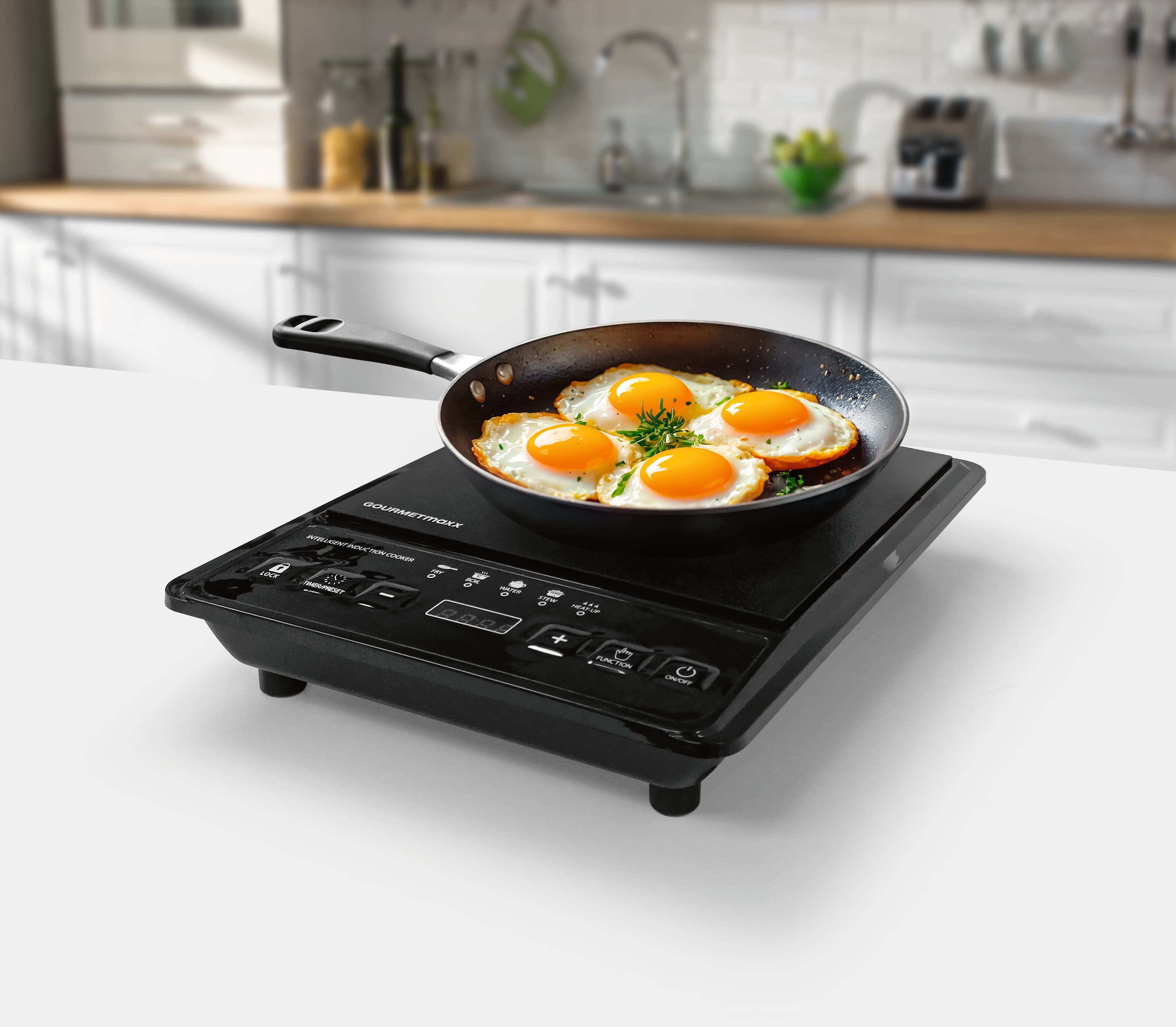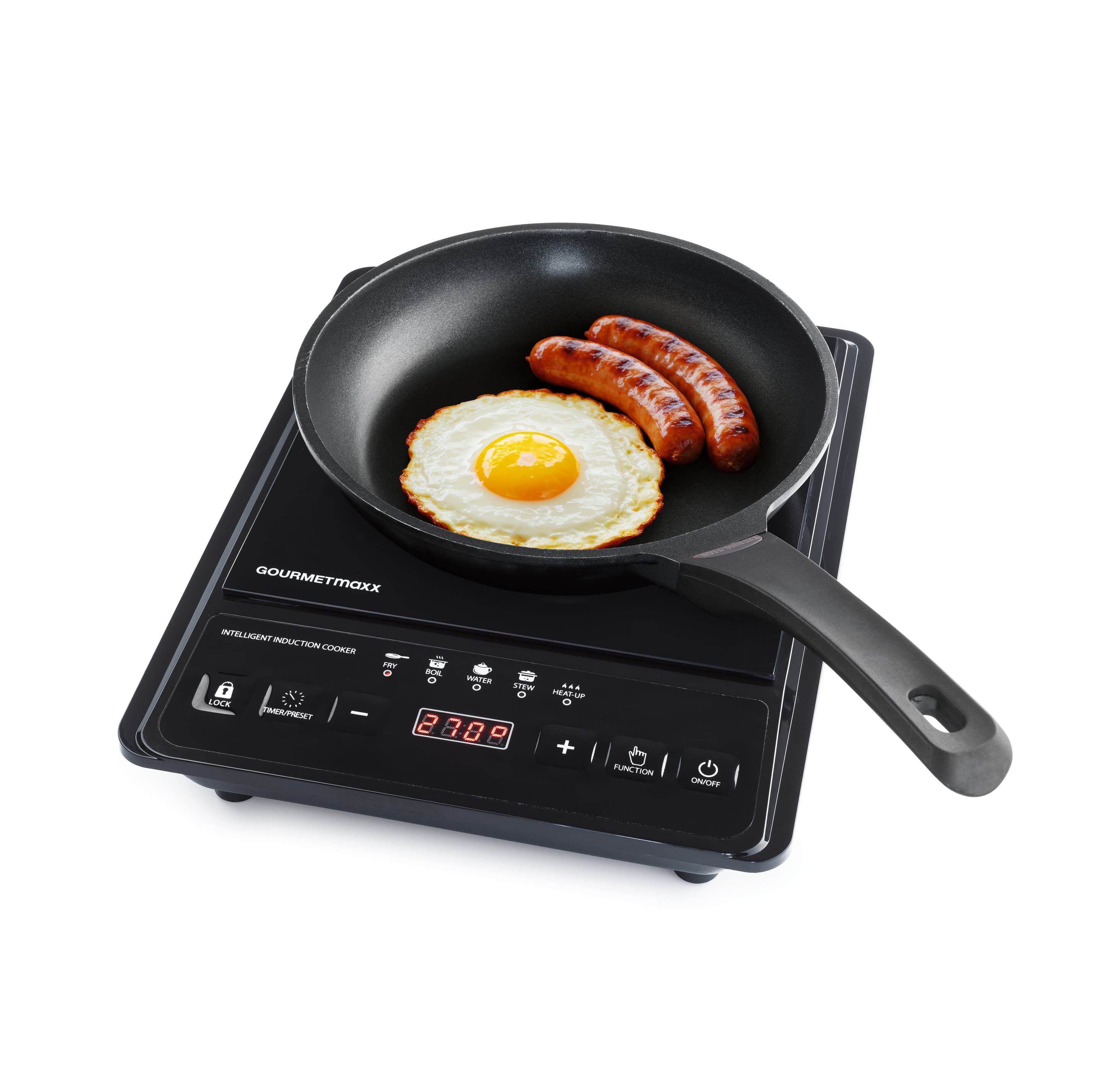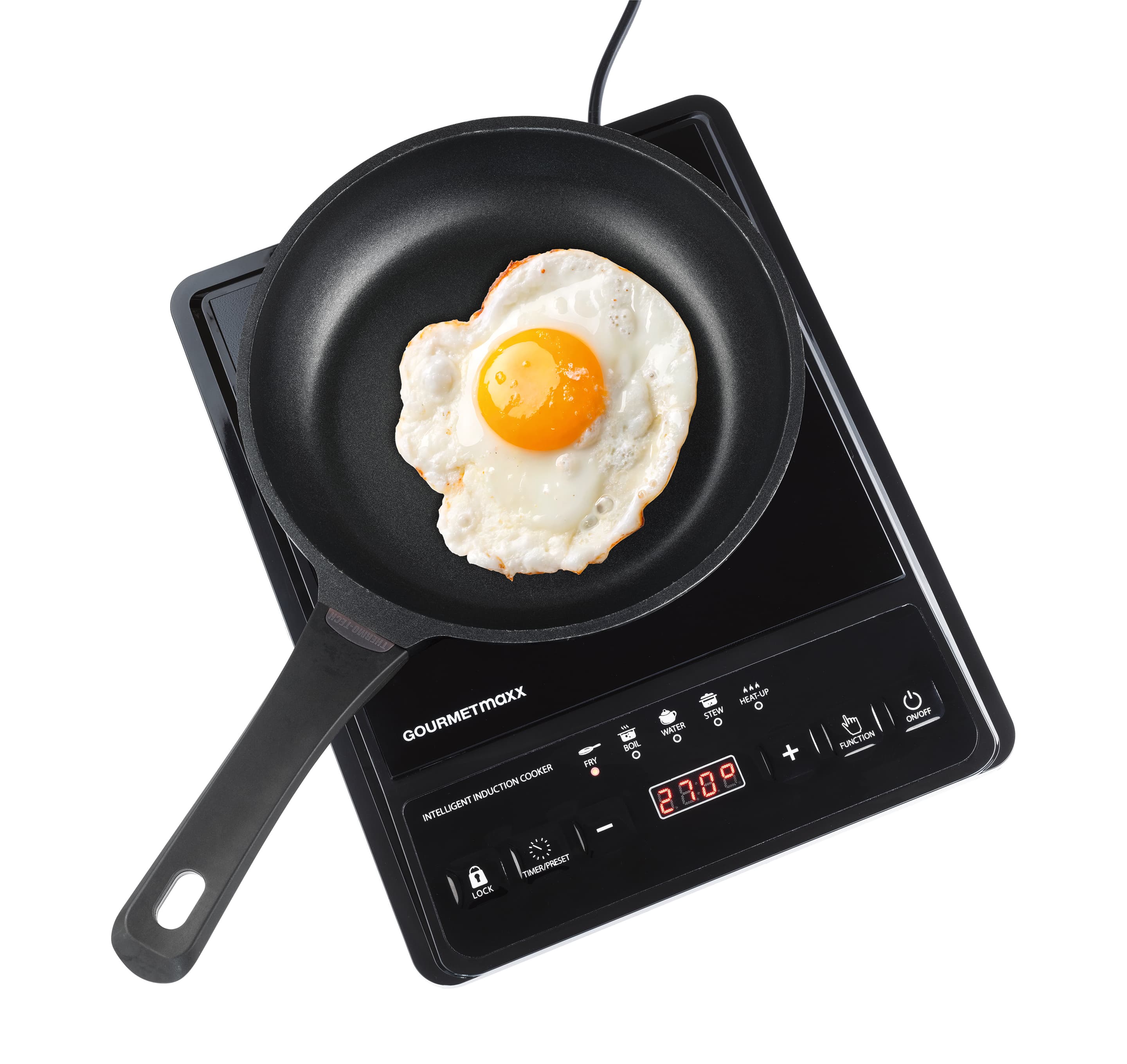 Das GOURMETmaxx Single-Induktionskochfeld ist die perfekte Lösung für modernes und flexibles Kochen. Ermöglicht schnelles und effizientes Kochen. Die Temperatur lässt sich präzise von 80 bis 240°C einstellen, sodass Sie stets die perfekte Hitze für jedes Gericht wählen können. Dank der fünf Heizstufen können Sie das Kochfeld je nach Bedarf anpassen, um unterschiedlichste Anforderungen zu erfüllen. Die integrierte Technologie sorgt für ein schnelles Abkühlen der Kochplatte durch einen Ventilator, der eine effiziente Kühlung gewährleistet. Zudem ist das Kochfeld mit einem praktischen 3-Stunden-Timer ausgestattet, der es ermöglicht, die Kochzeit exakt zu steuern. Das digitale Display bietet einen klaren Überblick über alle Einstellungen und sorgt so für eine einfache Handhabung. Das kompakte, leichte Design macht das Kochfeld perfekt für mobile Anwendungen und kleine Küchen. Die integrierte Kindersicherung verhindert unbeabsichtigtes Einschalten – optimal für moderne Haushalte und unterwegs.