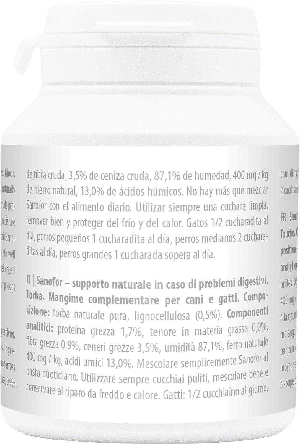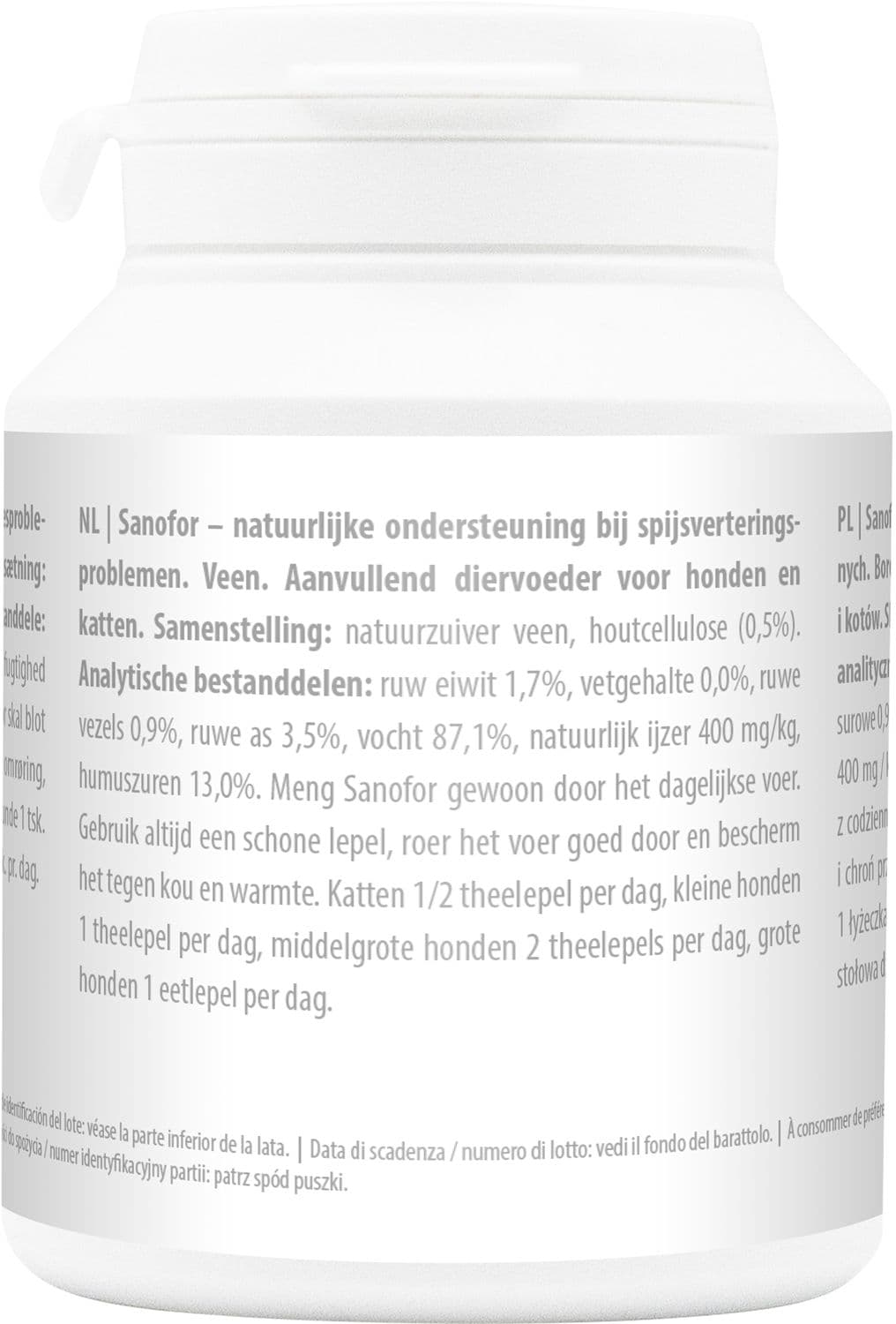 Sanofor ist ein Naturmoor und besteht aus organischer Substanz von Urpflanzen. Es sorgt für eine vitale Darmschleimhaut und -flora und unterstützt den Magen-Darm-Trakt. Es hat sich bei vielerlei Verdauungsproblemen bewährt. Sanofor optimiert die Kotkonsistenz, neutralisiert Magensäure, bindet unerwünschte Stoffe im Darm und mindert das Kot- und Unratfressen.