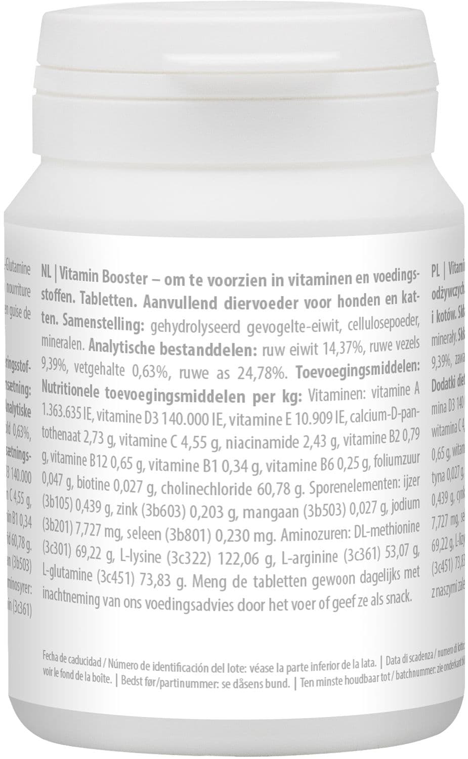 Hunde und Katzen jeden Alters brauchen zur Gesunderhaltung und besonders bei ernährungsbedingten Mangelerscheinungen (z. B. nach einer Krankheit) für ihr Immunsystem, ihre Entwicklung und ihren Muskel- und Knochenaufbau eine Extraportion Vitamine, Spurenelemente und Aminosäuren. Der Vitamin Booster versorgt Hunde und Katzen in besonderen Lebenssituationen mit einem wertvollen Komplex dieser Wirkstoffe.