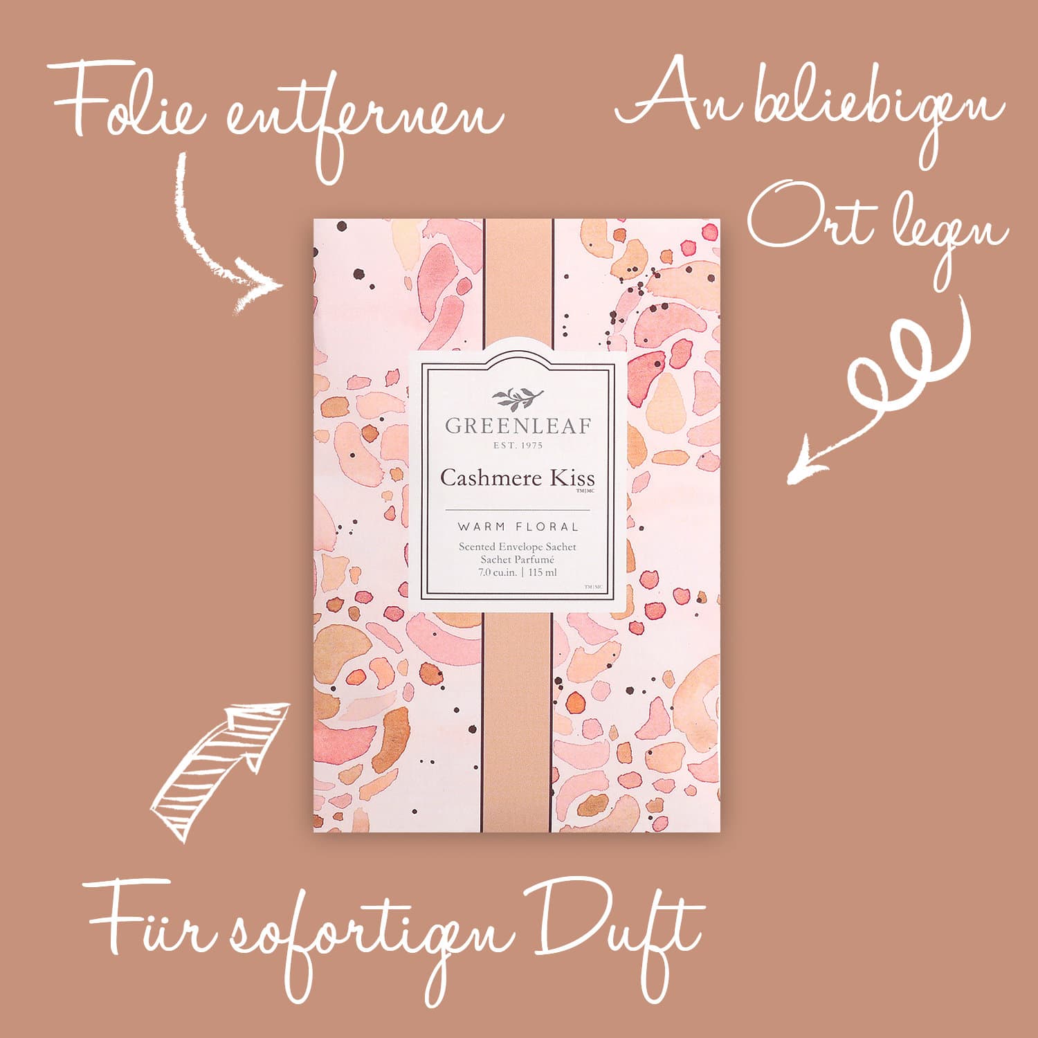 | Anwendungshinweis | Das Duftsachet einfach an einem gewünschten Ort platzieren oder aufhängen, damit sich der Duft dezent im Raum verteilt. |