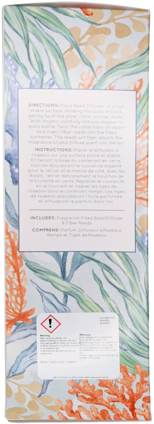 Eine frische, raue Brise weht vom Meer und wird durch zarte Jasminblüten, samtiges Sandelholz und Moschus verfeinert. Das dekorative, runde Glasgefäß in der hübschen Geschenk-Box enthält 118 ml Reed Diffuser Öl. Die Zusammensetzung der Reed-Öle von Greenleaf sorgt für eine lang anhaltende Beduftung. Das Öl wird schnell von den beigefügten Stäbchen absorbiert, ein Drehen der Sticks in der Flasche ist laut Herstellerangaben nicht nötig, da sich das Öl beständig und gleichmäßig in den Stäbchen verteilt. Die Duftintensität kann durch die Anzahl der Sticks reguliert werden. Anwendung: Die beigefügten Stäbchen in das Glasgefäß geben. Die Stäbchen nehmen die Reed Flüssigkeit auf und geben den Duft an die Umgebung ab. Ein Drehen der Stäbchen in der Flasche ist laut Hersteller nicht nötig, da das Öl sich beständig und gleichmäßig in den Stäbchen verteilt. Die Duftintensität kann durch die Anzahl der Sticks reguliert werden. Schenkt bis zu vier Monaten Dufterlebnis. Warnhinweis: Reed Öl nur auf ebener, standfester Fläche verwenden.