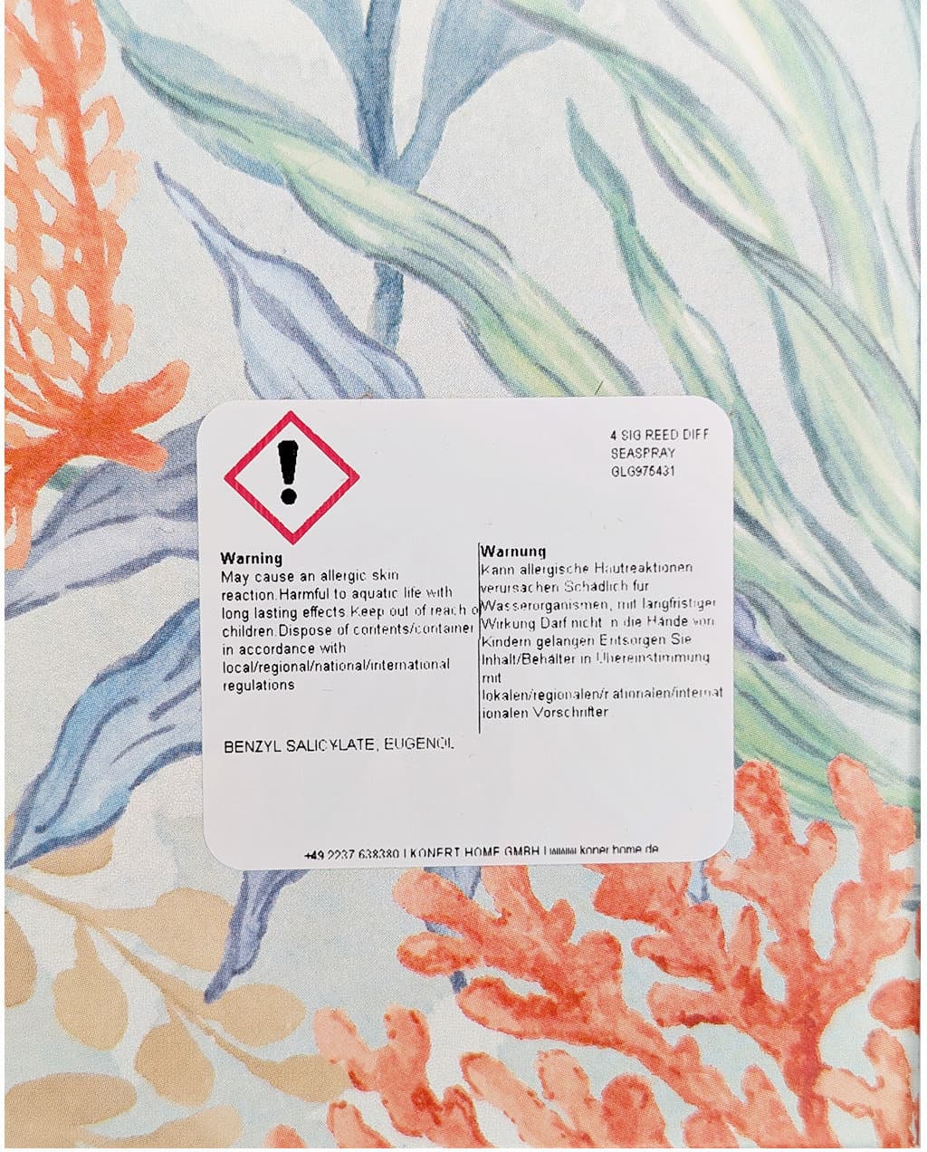 | Anwendungshinweis | Je nach Intensität des Duftes gewünschte Anzahl von Duftstäbchen in die Flasche stellen, damit sich der Duft gleichmäßig im Raum verteilt. |