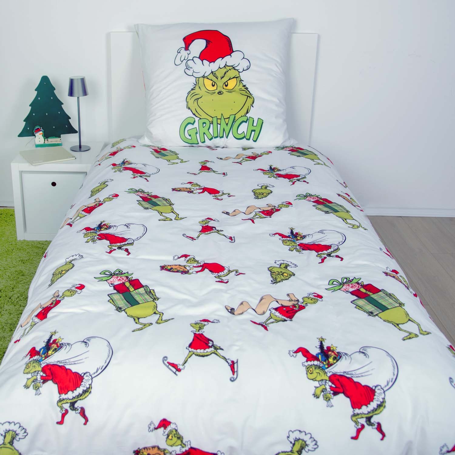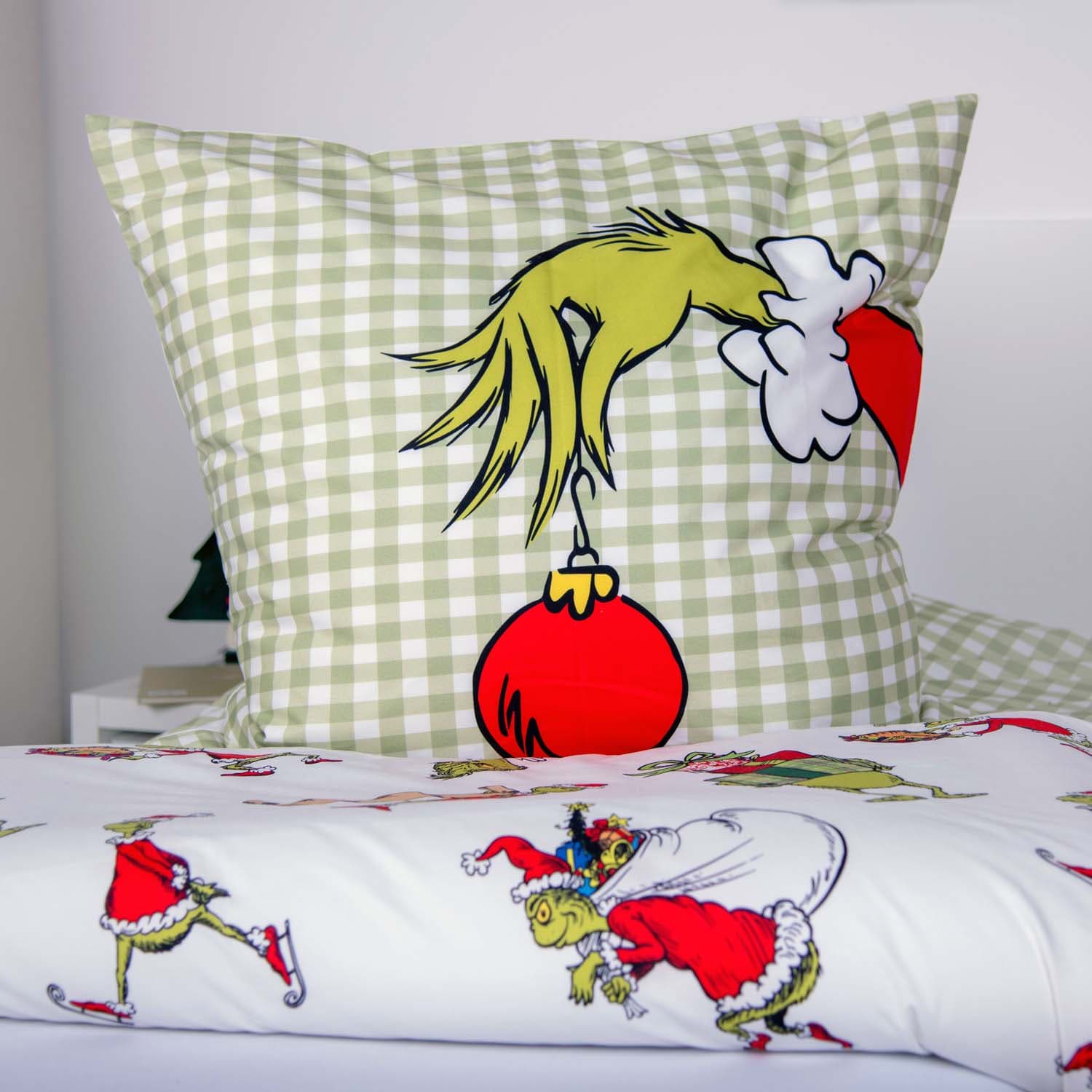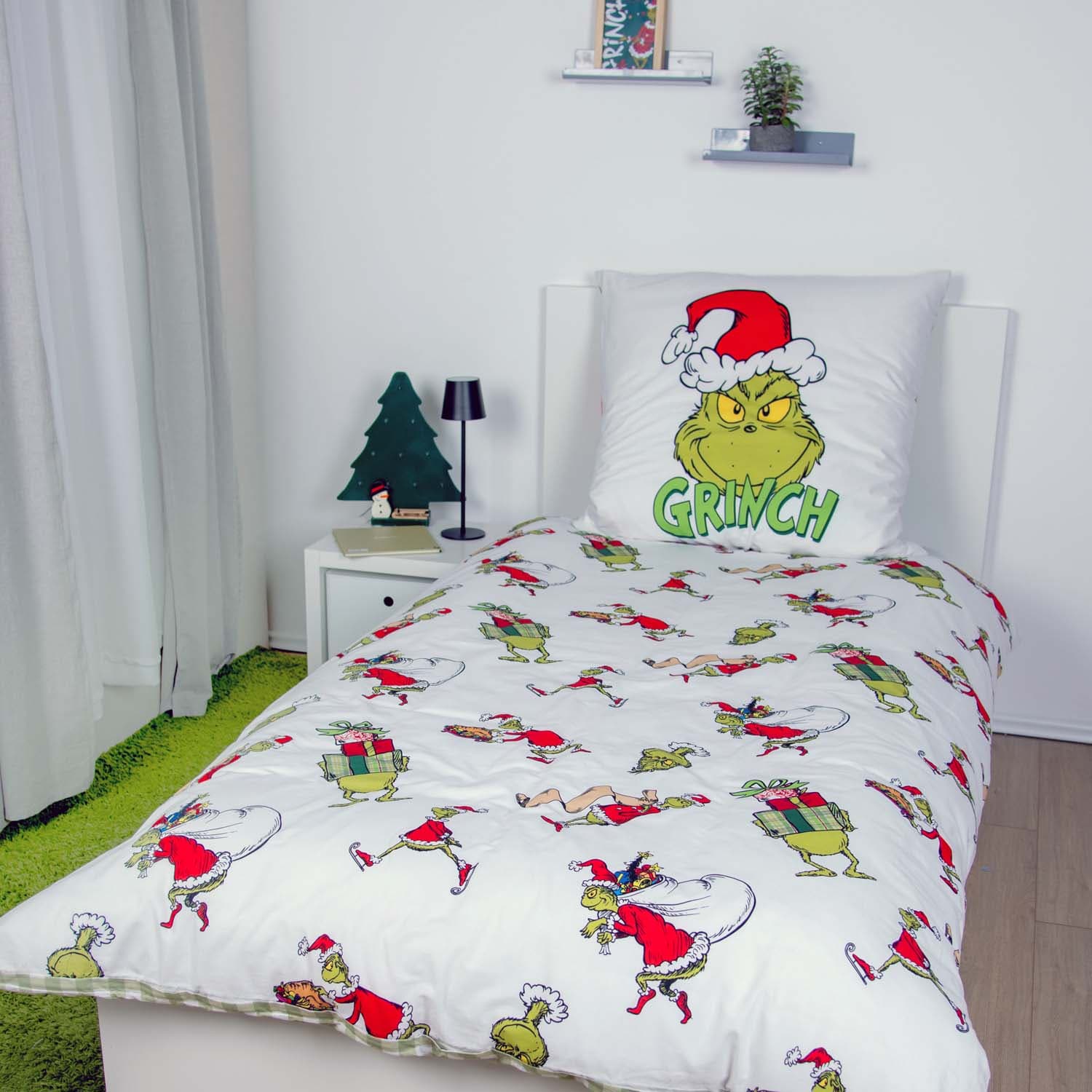 Mit dieser Grinch Bettwäsche aus 100 % Baumwolle wird dein Schlafzimmer zur festlich-frechen Wohlfühloase! Das farbenfrohe Design mit dem kultigen Grinch bringt jede Menge Weihnachtsstimmung mit einem Augenzwinkern in dein Zuhause – perfekt für alle, die Weihnachten lieben oder mit einem Augenzwinkern betrachten. Der angenehm weiche Baumwollstoff sorgt für ein natürliches Schlafklima und ist sowohl hautfreundlich als auch atmungsaktiv. Dank des praktischen Reißverschlusses lässt sich die Bettwäsche ganz einfach wechseln. Sie ist pflegeleicht, bei 60 °C waschbar und trocknergeeignet – ideal für die Winterzeit. Ob für dich selbst oder als originelles Geschenk: Diese Grinch Bettwäsche ist ein echter Hingucker und sorgt garantiert für ein Lächeln, selbst bei Weihnachtsmuffeln.